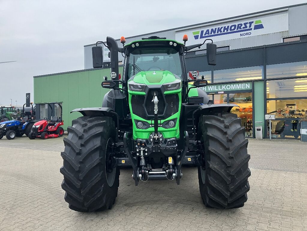 Neumaschine Hocheffizienter DEUTZ TTCD 6.1 L06 4V Stufe 5 Motor. 4 Ventile mit DCR (Deutz Common Rail). 6 Zylinder mit 6057 cm³ Hubraum, Doppelturbolader mit zwei Ladeluftkühler (Stufe 1: Luft-Luft; Stufe 2: Luft-Wasser), SCR System (Selective Catalytic Reduction), EGR (externe Abgasrückführung) und passiver DPF (Diesel Partikel Filter). 2.100 1/min Nenndrehzahl. Nennleistung (ECE R 120): 268 PS/197 kW. Maximalleistung (ECE R 120): 287 HP/211 kW. Elektronisch geregelter "eVisco" Lüfter. SDF T7780 TTV transmission, PowerZero Funktion, 2 Tempomatspeicher, TrailerStretch Modus und einstellbares Powershuttle. MaxiVision Kabine, MaxCom Armlehne und MaxControl Joystick für die Kontrolle von Motorfunktionen, Getriebefunktionen, Hydraulik sowie Kraftheber. Allrad, Differentialsperre sowie Zapfwelle mit Automatikfunktionen. InfoCentrePro mit 5" Display. elektronische Parksperre (EPB) Zweileitungs Druckluftbremsanlage M.R. Version EU/DE Fronttriebachse gefedert mit Lamellensperrdifferenzial 100% und ASM/SBA Batterie: 12V-180Ah-800A 7 polige Signaldose ISO 11786 für Anbaugeräte (z.B. für Feldspritze) 2 Zündschlüssel Vorbereitung ISOBUS Gerätesteuerung nach ISO 11783 (Steckdose Heck, Steckdose für Terminal in der Kabine) Auspuff nach oben am A-Pfosten 505l Dieseltank (Eintanksystem) sowie 35l AdBlue Tank. AdBlue Tank mit Luft-Dom zum Schutz vor Überfüllung. Im Tank integrierte, verzinkte Trittstufen. Tankdeckel ohne Schloss Luftfilter 10" mit Staubejektor Druckluftserviceanschluss mit Spiralschlauch und Druckluftpistole Elektronischer Motorregler DEUTZ TTCD 6.1 Doppelturbomotor mit 287 PS max Leistung sowie 1226 Nm maximalen Drehmoment. Abgasstufe V dank AGRex, passivem DPF sowie SCR System. Vorteilspaket für Konnektivität Standard Ausführung Remote-Anschlüsse hinten, mit Abreißfunktion und Ölauffangsystem Power Beyond Kupplung (bei LS-System) Drucklose Rücklaufleitung hinten Anhängesystem Ausführung Sauermann Anhängebock lang Einstellbare automatische Seitenstabilisierung Unterlenker links und rechts Heckkraftheber mit 11.100 kg Hubkraft Hubstreben beidseitig verstellbar Heckkraftheber mit elektronischer Regelung EHR Unterlenker mit Schnellkupplern und Fanghaken von Walterscheid (Oberlenker mechanisch) elektrisches Steuergerät für Frontkraftheber Frontkraftheber mit doppeltwirkenden Zylindern (Hubkraft 5480 kg) inklusiver 2 Wiederholscheinwerfer über Positionsleuchten, ohne Dreieck. Beifahrersitz gepolstert mit Sicherheitsgurt Automatik-Sicherheitsgurt für Fahrersitz Scheibenwischer/ -waschanlage hinten MaxiVisionPro Kabine mit zusätzlichen Luftdüsen am Lenkturm. Armaturenbrett "InfoCenterPro" mit 5" TFT Farbdisplay (km/h) Rückenverlängerung für Fahrersitz Karosseriefarbe DEUTZ-FAHR grün CTM 4G Communication Telematic Module mit integrierter e-Sim Karte, automatische Einwahl in das lokal beste Netz. Nur in Verbindung mit Connectivity-Paket. Das CTM ermöglicht verschiedene weitere Anwendungen (ggf. kostenpflichtig): RTK NTRIP, Flottenmanagement, Agrirouter. AGROSKY Performance Steering ready mit "EASY STEER" Funktion zur Einstellung der Lenkübersetzung Kennzeichenhalter vorne auf Auspufftopf Heckscheibe ausstellbar, Heckscheibe unten fixiert zusätzlich Schall- und Hitzedämmend Kabine, pneumatisch gefedert, niveaureguliert bei Druckluftanlage Spezifikation für deutschsprachige Märkte Elektrische Anlagen Standard Maschine Bedienungs- und Wartungsanleitung (Deutsch) Homologation für EEC Markt (Mother Regulation) Zeichen Geschwindigkeit Heckscheibe Schilder "Warnhinweise" Zusätzlicher Werkzeugkasten auf der linken Seite Hinterachse mit Flanschverbindung Powershuttle mit SENSE CLUTCH Stufenloser SDF TTV T7780 Kraftsatz mit zwei Fahrbereichen. Höchster Wirkungsgrad dank automatischen, nicht spürbaren Gruppenwechsel. Vier Fahrstrategien: Auto+ mit der Möglichkeit der Festlegung der minimalen Motordrehzahl durch das Handgas und Limitierung der maximalen Drehzahl durch den Eco-Power Potentiometer sowie die Möglichkeit der Nutzung der Drehzahlspeicher; Auto mit der Möglichkeit des Handgas als 3ten Tempomaten; PTO für Arbeiten mit der Zapfwelle sowie Manual für die manuelle Vorwahl der Drehzahl sowie PowerShift-Funktion durch gleichzeitiger Nutzung der Shift-Taste am MaxCom Griff. Drei elektronisch geschaltete Heckzapfwellendrehzahlen (540E/1000/1000E) mit Automatik-Funktion Felgen vorne und hinten voll verschweißt Ohne Radballast Kotflügel vorne, verstellbar und schwenkbar, Breiten angepasst Optionen: -Schiene auf der Oberseite der Kabine (zwischen rechter A- und B-Säule) zur Befestigung von Fremdgeräten -Antennenhalter auf dem Dach -Abnehmbare Kühlbox mit 12V-Steckdose -Oberlenker Kat. III für FKH mit automatischem Fanghaken -Paket Konnektivität für CTM 5 Jahre -5 Zusatzsteuergeräte elektro-hydraulische Betätigung, alle mit Mengen- und Zeitregelung -Komfortpaket für Frontkraftheber: Fernbetätigung FKH und 7-polige Steckdose (nicht in Verbindung mit FA192); 1 Steuergerät elektr. mit 2 doppelt wirkenden Anschlüsse vorn. -Load-Sensing Verstellpumpe mit 210 l/min Förderleistung -Heizung für Kraftstofffilter -Steuertastenfeld MMI -iMonitor3 in 12" beinhaltet TCSC, GEO, VRC, AUX-N, UT, ISOXML-Datenaustausch -Steckdose für Anhänger mit ABS -Wiederholscheinwerfer LED -4 Arbeitscheinwerfer LED in Motorhaube -2 Arbeitsscheinwerfer LED IV vorne -2 Arbeitsscheinwerfer LED IV hinten unten -2 Rundumleuchten H1 -LED Scheinwerfer vorne für Rechtsverkehr -LED Positionsleuchte und LED Blinker vorne sowie LED Bremslicht, LED Positionslicht und LED Blinker hinten -Mit Druckluftzusatzbehälter 20 Liter -Frontscheibe geschlossen, Seitenscheiben links und rechts ausstellbar -Kotflügel hinten mit Fernbetätigung: Zapfwelle, Hubwerk, Steuergerät und Beleuchtung -Zapfwellenstummel 1 3/8 Zoll, 6-Zahn -Überbreitenmarkierung M.R. 2,75m -50 km/h Super-Eco -Bereifung: 600/70R30 vorne, 710/70R42 hinten -Bereifung Marke Trelleborg 38"-42"-46" -Kotflügel Verbreiterung A