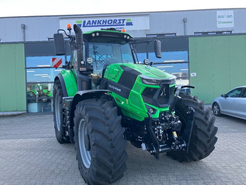 Neumaschine DEUTZ TCD 6.1 L06 4V Abgasstufe 5 (Tier5). 4 Ventile DCR (Deutz Common Rail). 6 Zylinder. Hubraum 6057ccm. SCR System (Selective Calalytic Reduction), EGR Ventil (External Gas Recirculation) und Passivere DPF (Diesel Partikel Filter). Power bei Nenndrehzahl (ECE R 120): 174 PS/128 kW. Max power (ECE R 120): 181 PS/133 kW. Power bei Nenndrehzahl mit Boost (ECE R 120): 179 PS/132 kW. Max power mit Boost (ECE R 120): 191 PS/140 kW. Hydrostatische Lenkung mit separater Pumpe. Kotflügel hinten mit Betätigung für Hydraulik, Zapfwelle und Steuerventile. elektronische Parksperre (EPB) Zweileitungs Druckluftbremsanlage M.R. Version EU/DE Unterlegkeil Fronttriebachse mit adaptivem Federungssystem, 100% Lamellensperrdifferenzial ASM gesteuert sowie Ölbad-Scheibenbremsen für unabhängige Bremse an allen 4 Rädern. Batterie: 12V-180Ah-800A Bei Joystick für Steuergeräte ohne Umschaltung P1,P2,P3 Vorbereitung für ABS Steckdose Vorbereitung für Bedienung I-Monitor über Touchscreen Bedienpanel für Arbeitsscheinwerfer (WOLP) Auspuff nach oben am A-Pfosten Kraftstofftank: 350 Liter + AdBluetank 29 Liter Tankdeckel ohne Schloss Abgasstufe V Standard Ausführung MaxiVisionPro-Kabine mit elektronischen Hecksteuergeräten Remote-Anschlüsse hinten, mit Abreißfunktion und Ölauffangsystem Drucklose Rücklaufleitung hinten Anhängebock lang Einstellbare automatische Seitenstabilisierung Unterlenker links und rechts Mechanischer Oberlenker mit Fanghaken automatisch Hubstreben beidseitig verstellbar Heckkraftheber mit elektronischer Regelung EHR Externe Bedienung für Heckkraftheber und Zapfwelle am linken und rechten Heckkotflügel und einem DW Hecksteuergerät Beifahrersitz gepolstert mit Sicherheitsgurt Multifunktionsarmlehne rechts verstellbar Automatik-Sicherheitsgurt für Fahrersitz Scheibenwischer/ -waschanlage hinten MaxiVision-Kabine mit MaxCom-Joystick-Steuerung: verstellbare Lenksäule mit integriertem InfoCentrePro, Belüftungs- und Heizsystem, gekühltes und beheiztes Getränkefach, getönte Gläser (seitlich und hinten), Ambientebeleuchtung Armaturenbrett "InfoCenterPro" mit 5" TFT Farbdisplay (km/h) Klimaanlage manuell Rückenverlängerung für Fahrersitz Karosseriefarbe DEUTZ-FAHR grün CTM 4G Communication Telematic Module mit integrierter e-Sim Karte, automatische Einwahl in das lokal beste Netz. Nur in Verbindung mit Connectivity-Paket. Das CTM ermöglicht verschiedene weitere Anwendungen (ggf. kostenpflichtig): RTK NTRIP, Flottenmanagement, Agrirouter. Kennzeichenhalter vorne auf Auspufftopf Heckscheibe ausstellbar, Heckscheibe unten fixiert Spezifikation für deutschsprachige Märkte Elektrische Anlagen Standard Maschine Bedienungs- und Wartungsanleitung (Deutsch) Homologation für EEC Markt (Mother Regulation) Zeichen Geschwindigkeit Heckscheibe Schilder "Warnhinweise" Kotflügel Verbreiterung Außenbreite 2400 mm Felgen vorne und hinten voll verschweißt Stufenloses TTV-Getriebe mit 3 Fahrstrategien (MANUAL/AUTO/PTO) und sanftem Fahrverhalten, Power Zero-Funktion, zwei Cruise-Funktionen in jede Richtung, minimale Motordrehzahl im Auto-Modus über das Handgas einstellbar Maximalbegrenzung über das ECO/Power-Potentiometer. Erweiterte Trailer-Stretch-Funktion. Heckzapfwelle mit mechanischem Geschwindigkeitswähler: 540/540E/1000/1000E (einschließlich 1" 3/8 mit 6-Keil-Stummelwelle) Powershuttle mit SENSE CLUTCH Hinterachse mit Flanschverbindung Optionen: -Autom. Anhängekupplung D 38 mm, und Kugel Anhängekupplung K80 höhenverstellbar -Anhängesystem Ausführung Sauermann -Sitz Max-Comfort Dynamic XXL Dynamische Luftfederung, elektr. verstellbare Lendenwirbelstütze Längs- und Querfederung, breiter Rahmen drehbar 8° (links) bis 15° (rechts) -DAB+ High Level Radio mit Freisprechfunktion. Voll integrierte Antenne im Kabinenhimmel. FM/DAB Tuner; Bluetooth, USB und Klinkeneingang. Integration der letzten Anrufe in das InfoCenterPro. -XLarge Vision: Elektrisch verstellbare und beheizte XL-Teleskoprückspiegel mit LED-Beleuchtung -MaxCom-Multifunktionsarmlehne ISOBUS-Expertversion. Mit vollständig integrierter Steuerung aller Traktorfunktionen: Getriebe, Handgas, 2 Motordrehzahlen, Heckkraftheber, Zapfwelle, Hydraulik, ComforTip, Frontkraftheber Positionssteuerung (in Kombination mit FB003/005). Die Armlehne ist mit allen hydr. Bedienelementen ausgestattet (unabhängig von der Hydraulikkonfiguration) somit können alle AUX-N Tasten belegt werden und man kann gleichzeitig die Steuergeräte betätigen. -Bereifung: 540/65R30 vorne, 650/65R42 hinten -Bereifung Marke Trelleborg 38"-42"-46" -Kotflügel vorne verstellbar und schwenkbar mit Fußstütze -Fangschalenhalter Kat.II-III/II -Zusatzhubzylinder (D. 100mm) mit 9700 kg Hubkraft -Unterlenker mit Schnellkupplern und Fanghaken von Walterscheid (Oberlenker mechanisch) -Oberlenker Kat. III für FKH mit automatischem Fanghaken -elektrisches Steuergerät für Frontkraftheber -Frontkraftheber mit doppeltwirkenden Zylindern (Hubkraft 4110 kg) und externer Bedienung -Lizenz für Fleed Management in Ergänzung zu 5 Jahre Data Traffic -Power Beyond Kupplung (bei LS-System) -4 Zusatzsteuergeräte elektro-hydraulische Betätigung, alle mit Mengen- und Zeitregelung -Komfortpaket für Frontkraftheber: Fernbetätigung FKH und 7-polige Steckdose (nicht in Verbindung mit FA192); 1 Steuergerät elektr. mit 2 doppelt wirkenden Anschlüssen vorn. -Load-Sensing Verstellpumpe mit 160 l/min Förderleistung -Heizung für Kraftstofffilter -iMonitor3 in 12" beinhaltet TCSC, GEO, VRC, AUX-N, UT, ISOXML-Datenaustausch -Vorbereitung ISOBUS Gerätesteuerung nach ISO 11783 (Steckdose Heck, Steckdose für Terminal in der Kabine) -Wiederholscheinwerfer über Blink- und Positionsleuchten LED -4 Arbeitscheinwerfer LED in Motorhaube -10 Arbeitsscheinwerfern LED positioniert am Dach. 4 vorne und 6 hinten. -Dachluke Glas mit UV-Beschichtung -Schmutzabweisende Bodenmatte für Kabine -Schiene auf der Oberseite der Kabine (zwischen rechter A- und B-Säule) zur Be