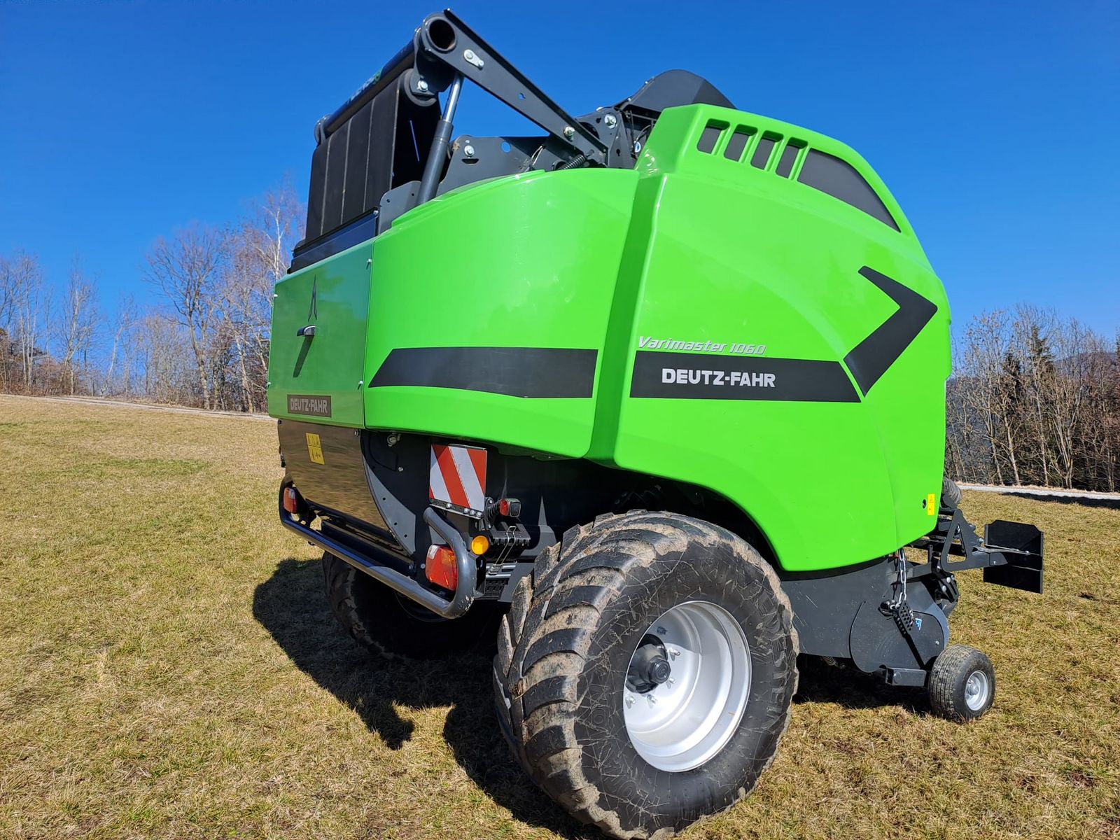 Hochleistungs-Rundballenpresse mit variabler Kammer, Endlosriemen, Integralrotor, 23 Messer mit Einzelmessersicherung und Gruppenschaltung 0-7-11-12-23, absenkbarer Schneidboden, Ballendurchmesser 0,8-1,6 m, Weichkern, Feuchtigkeitsanzeige, CCI-800 Isobusterminal, extrem hohe Verdichtung durch 2. Spannarm. Perfekte Presse unter allen Bedingungen für Silage, Heu und Stroh.