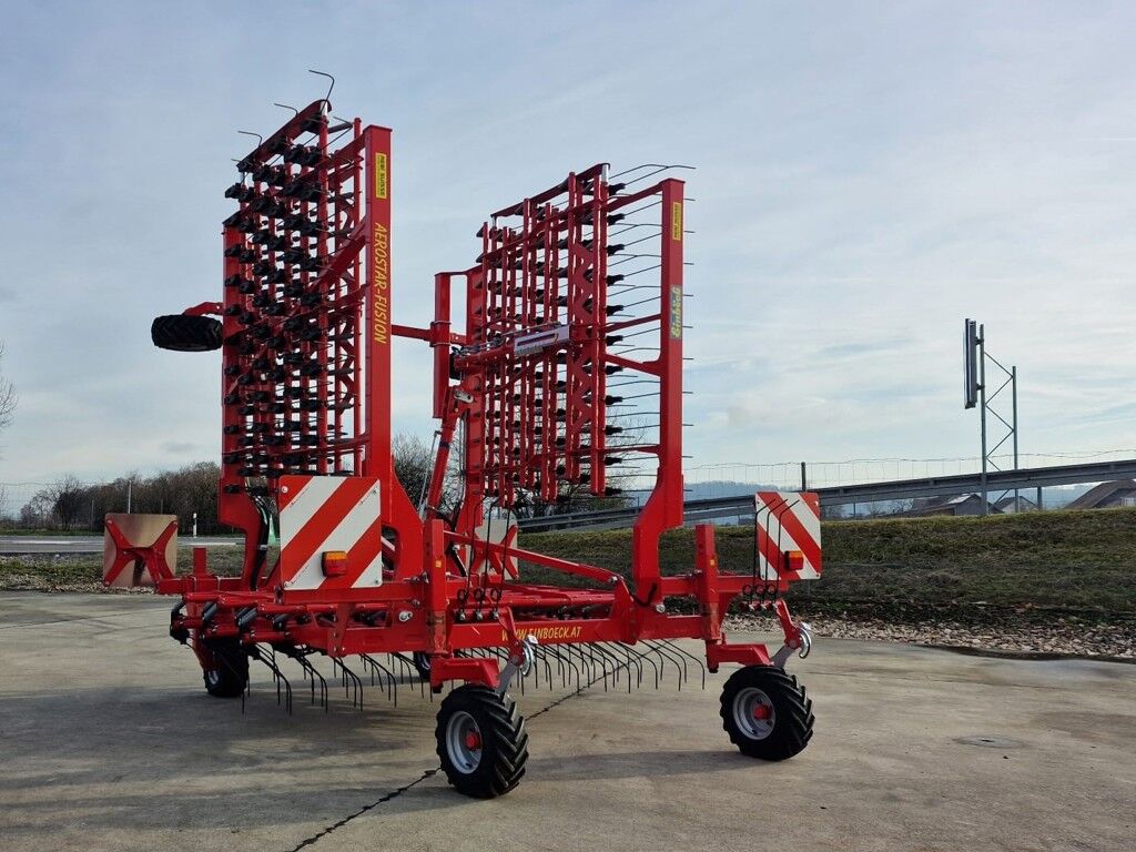VA052736Du willst höchste Präzision beim Striegeln und gleichzeitig von einem attraktiven Lagerabverkauf profitieren?Der Einböck AEROSTAR-FUSION 600 ist ein Premium-Hackstriegel für professionelle Betriebe im Acker-, Gemüse- und Kräuterbau.Deine Vorteile:– Extrem feinfühlig bis sehr aggressiv einstellbarZinkendruck von 100 g bis 6’000 g – ideal für junge Bestände und wechselnde Bodenbedingungen– Indirekt gefederte Einzelzinken– Präzises, pflanzenschonendes Arbeiten – perfekt für Dammkulturen, Gemüse und Kräuter– Hydraulische Aggressivitätsverstellung– Bequeme Anpassung direkt während der Arbeit– Optimale Bodenanpassung & hohe Flächenleistung– Dank 3-teiligen, selbsttragenden StriegelfeldernTechnische Ausstattung:– Arbeitsbreite: 6.22 m, hydraulisch klappbar– Striegelfelder: 3-teilig, selbsttragend– Zinken: 222 Stück, indirekt doppelt gefedert, Ø 7 mm, Länge 530 mm– Strichabstand: 2.8 cm– Stützräder: 6 Gummistützräder mit Stollenprofil, einfach verstellbar– Anbau: Kategorie II, Ø 28 mm– Sicherh