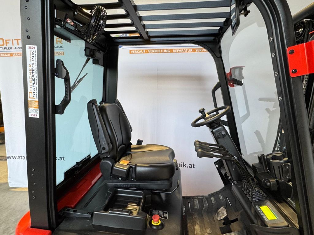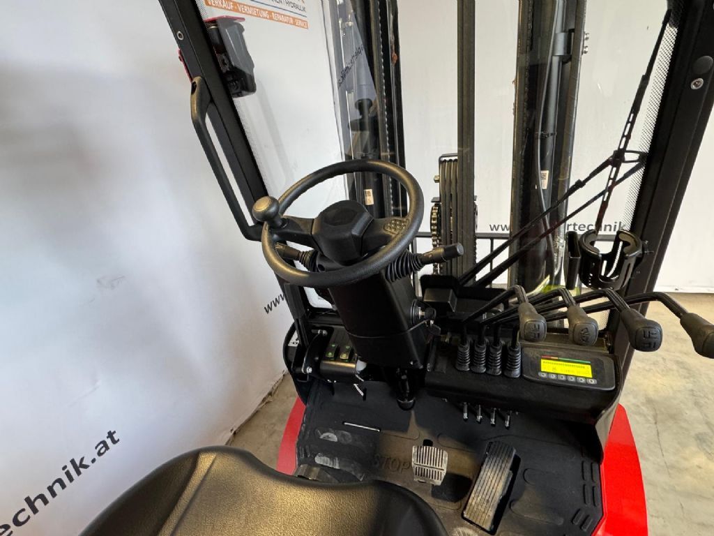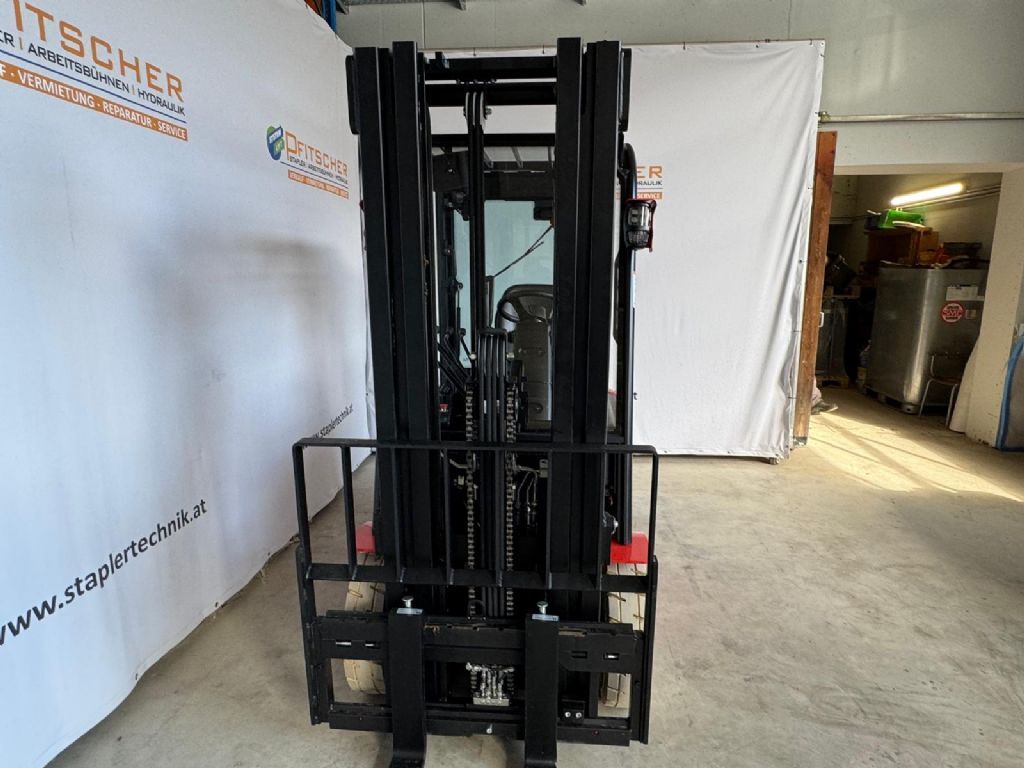 Bauart: Frontstapler / Elektro 4 Rad-Stapler, Tragkraft: 1800kg, Hubhöhe: 4800mm, Bauhöhe: 2150mm, Freihub: 1122mm, Gabellänge: 1150mm, Anbaugeräte: Seitenschieber, Sonderausstattung: 3. Ventil, 4. Ventil, Arbeitsscheinwerfer hinten, Arbeitsscheinwerfer vorn, Dachabdeckung, Frontscheibe, Halbkabine, Lastschutzgitter, Vollkabine, Vollfreihub, CE Zertifikat, Sitz,