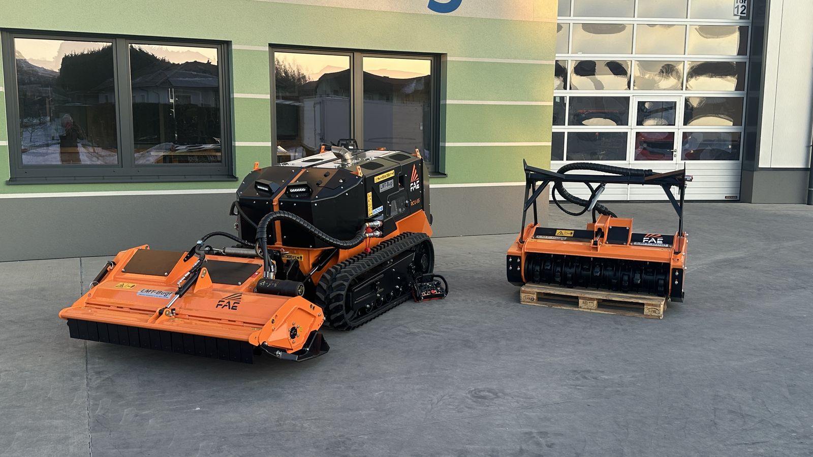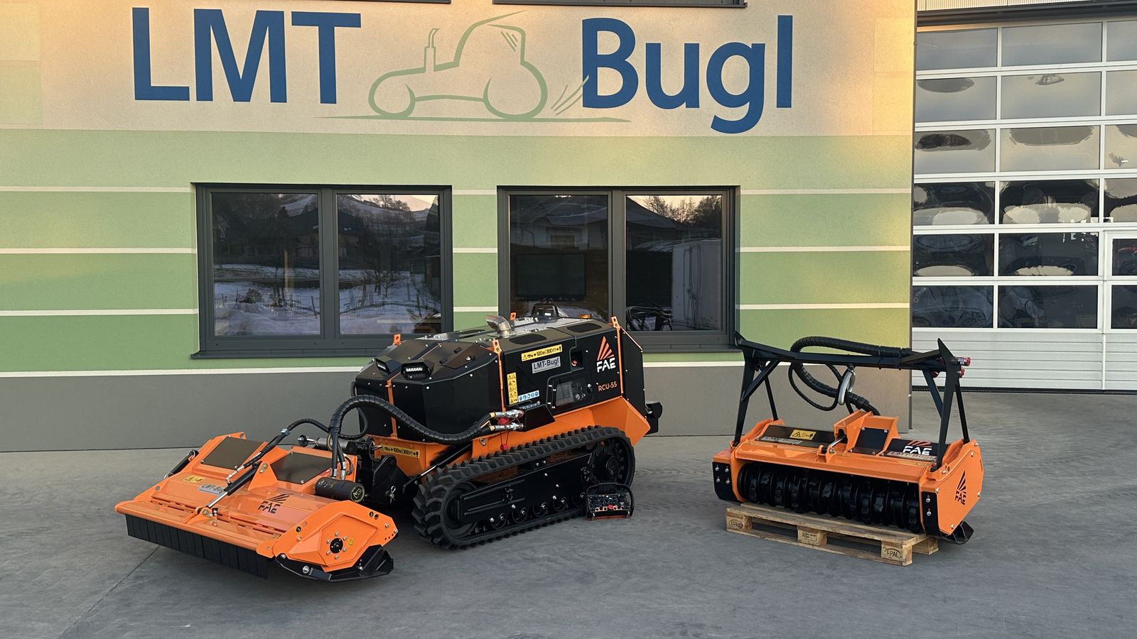 FAE RCU55 -Ferngesteuertes Raupenfahrzeug Dieselmotor REHLKO (KOHLER) KDI 1903 Turbo After-Cooler, Nachbehandlungssystem DOC/DPF, Hydrostatischer Antrieb Traktion, Hydrostatischer Antrieb Geräte, Zusatz-Hydraulik für Geräte, Lastkontrollsystem (Load Control), System verstellbare Spurweite mit unabhängiger hydraulischer Steuerung, Automatisches Gummiketten-Spannsystem, Hydraulisch gesteuertes proportionales Umkehrlüftersystem, Ergonomische Bedienelemente, Fernsteuerung mit doppelter Batterie und Batterieladegerät an Bord der Maschine, 7-Zoll-LCD-Farbdisplay an Bord der Maschine, LED-Arbeitsscheinwerfer, Floating System, High Profile Gummiketten und Walzensystem, 4,3-Zoll-LCD-Farbdisplay an der Fernsteuerung * biologisch abbaubares Hydrauliköl * Hintere Seilwinde mit 2tonnen Zugkraft * Forstmulcher BL1/RCU55-125 RCU-Schnellwechsel mit Anbauplatte mit Kippfunktion für Geländeausgleich * Mulcher PML/RCU55-150 Anbauplatte mit selbstregulierendem Niveauausgleich