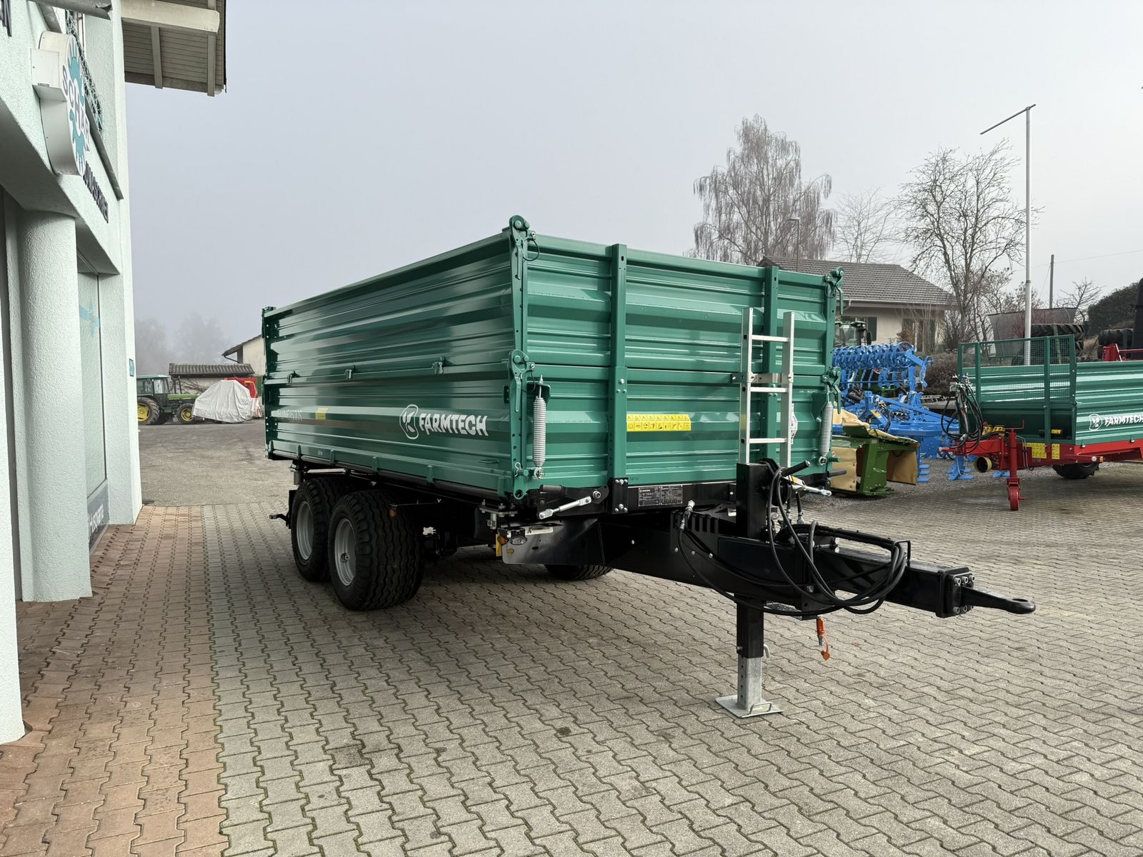 Farmtech Tandem 3-Seiten-Kipper T-Line 1500S: Gesamtgewicht 15t; Brückengrösse innen 448 x 215 / 225 cm (konisch); Bordwandhöhe 600 x 600 mm; Plattformhöhe 106 cm; zulässige Geschwindigkeit 40 km/h; Bereifung 19.0/45-17; Zweileitungsdruckluftbremsanlage mit ALB; Tandemfahrwerk gefedert; Obenanhängung; Sattelstützwinde mit 2 Geschwindigkeiten; Zentralverriegelung links, rechts und hinten; Bordwandhebefedern; Bremsanschlüsse für 2. Anhänger; Kippleitung hinten zusätzlich; LED Beleuchtung;