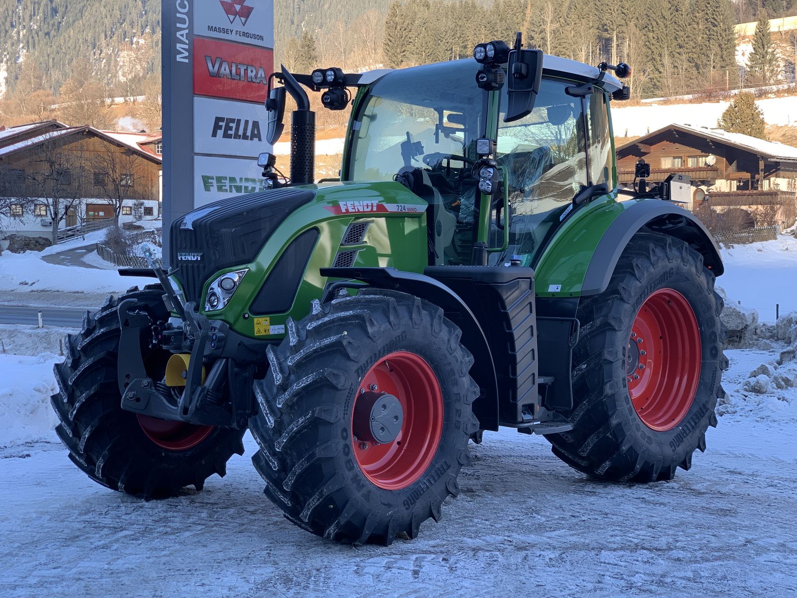 Fendt 724 Vario Gen6, Standardausführung, Profi Setting2, Motorbremse, Kraftstoffvorfilter, Abgasstufe V, Planeten-Hinterachse, 50 km/h - Ausführung, Flanschzapfen 1 3/8" 6-teilig, EHR-Regelung Kraftheber EW, Dreipunkt Kat. 2/3 SK ohne Oberlenker, Oberlenker SK hydr. Kat. 3/2/90, Anhängeschiene SK kurz Kat.2, Frontkraftheber Kat. 2 Lage / Entlastung, Frontzapfwelle 1000 U/min, Kugelhülse Kat.3/2 1Paar zu Unterl. SK, Kugelhülse Kat.2 zu Oberlenker SK, Kugelhülse Kat.3/2 zu Oberlenker SK, Zusatzventile dw 1/1-1/3 Heck DUDK, Zusatzventil dw 1/4 Heck DUDK, Zusatzventil dw 1/5 Heck DUDK, Zusatzventil dw 2/1 Front, Zusatzventil dw 2/2 Front, Hydraulikpumpe 152 l/min, Power-Beyond, Hydraulikventilbetätigung extern, Lackierung Nature Green/Felgen Terra Red, Panoramakabine VisioPlus, Segment-Scheibenwischer / 2 Wischfelder, Heckscheibe beheizbar, Klimaautomatik, SuperKomfortsitz Titanium / DL, Innenspiegel vorn, Bodenmatte Kabine, Universalhalterung für Handy, 12V ABS-Steckdose, Gerätesteckdose, Kameraanschlüsse 2x digital 2x analog, Lenkrad inkl. Drehgriff, Terminal - Halterung, Rückspiegel, Kabinenfederung Komfort pneumatisch, Arbeitsscheinwerfer Dach vorn LED, Arbeitsscheinwerfer Dach vorn innen LED, AB-Scheinwerfer A-Säule+Kotfl.hinten LED, Zusatzbeleuchtung vorn LED, Corner lights LED, Rücklicht/Blinker LED, Abblend- und Fernlicht LED, AB-Scheinwerfer Dach hinten LED / 2 Paar, Wegfahrsperre, Batterie -Trennschalter elektrisch, LED Rundumkennleuchte links, LED Rundumkennleuchte rechts, 4 USB Anschlüsse Armlehne, Infotainment Paket+ 4.1 Soundsystem, Maschinensteuerung Basispaket, Zweikreisbremse, Überbreitenkennzeichnung mit Warntafeln, DL 2-Leitungsanlage für Anhänger, DL-Duomatik-Kupplung, Autom. Anhängekupplung 38er Bolzen, Anbaubock für Anhängerkupplung, Grundfahrzeug, FL-Mehrfachkuppler/3.+4.Kreis Schleppers, 540/65R28 142D TB-35 10 W16LX28, 650/65R38 157D TB-40 10 DWW20X38 , 1950 mm Spur vorn, 1920 mm Spur hinten
