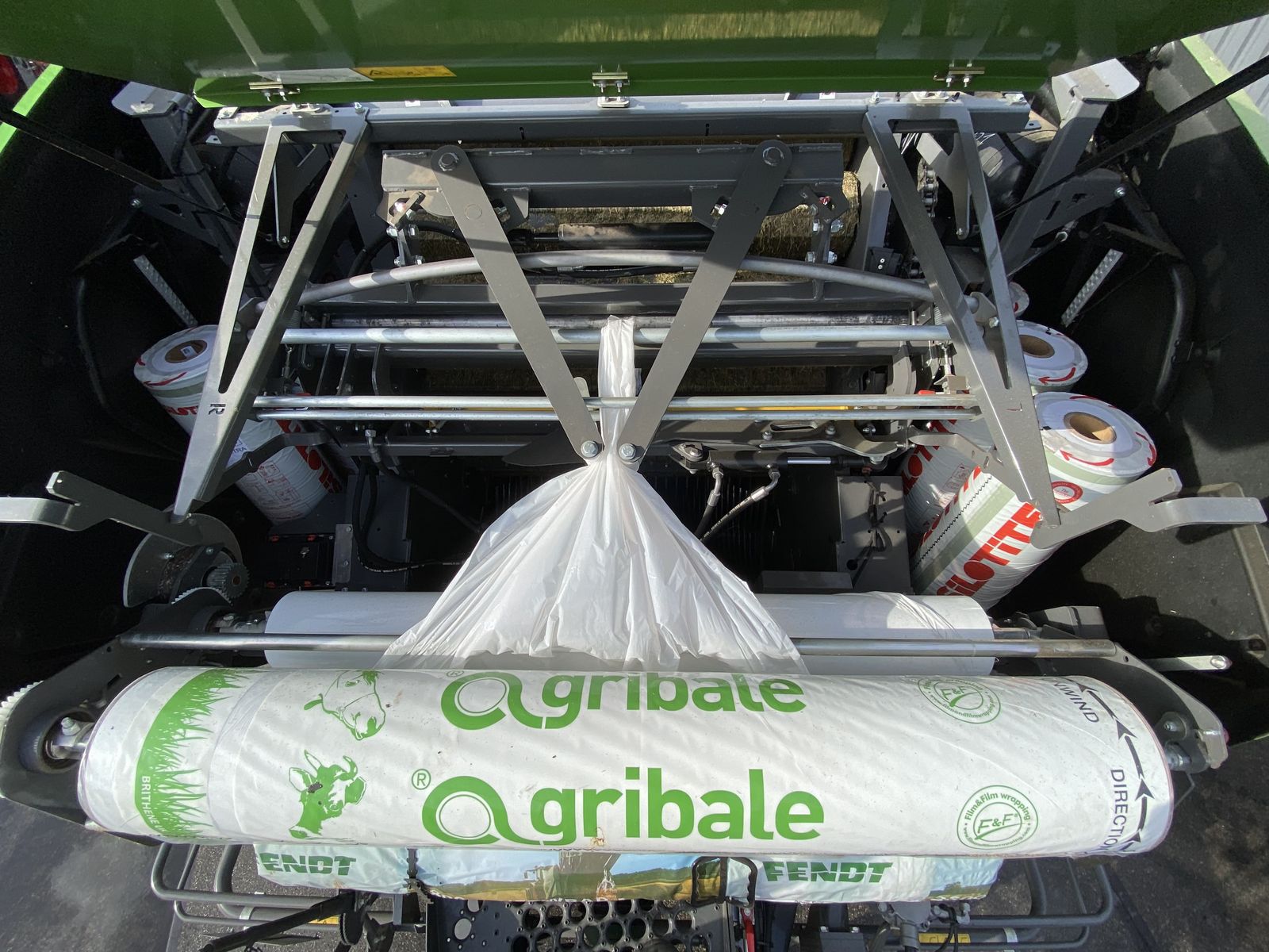 Gebrauchte ex Demo Fendt Rotana 130F Combi Presswickelkombination mit Folienbindung, Baujahr 2022.