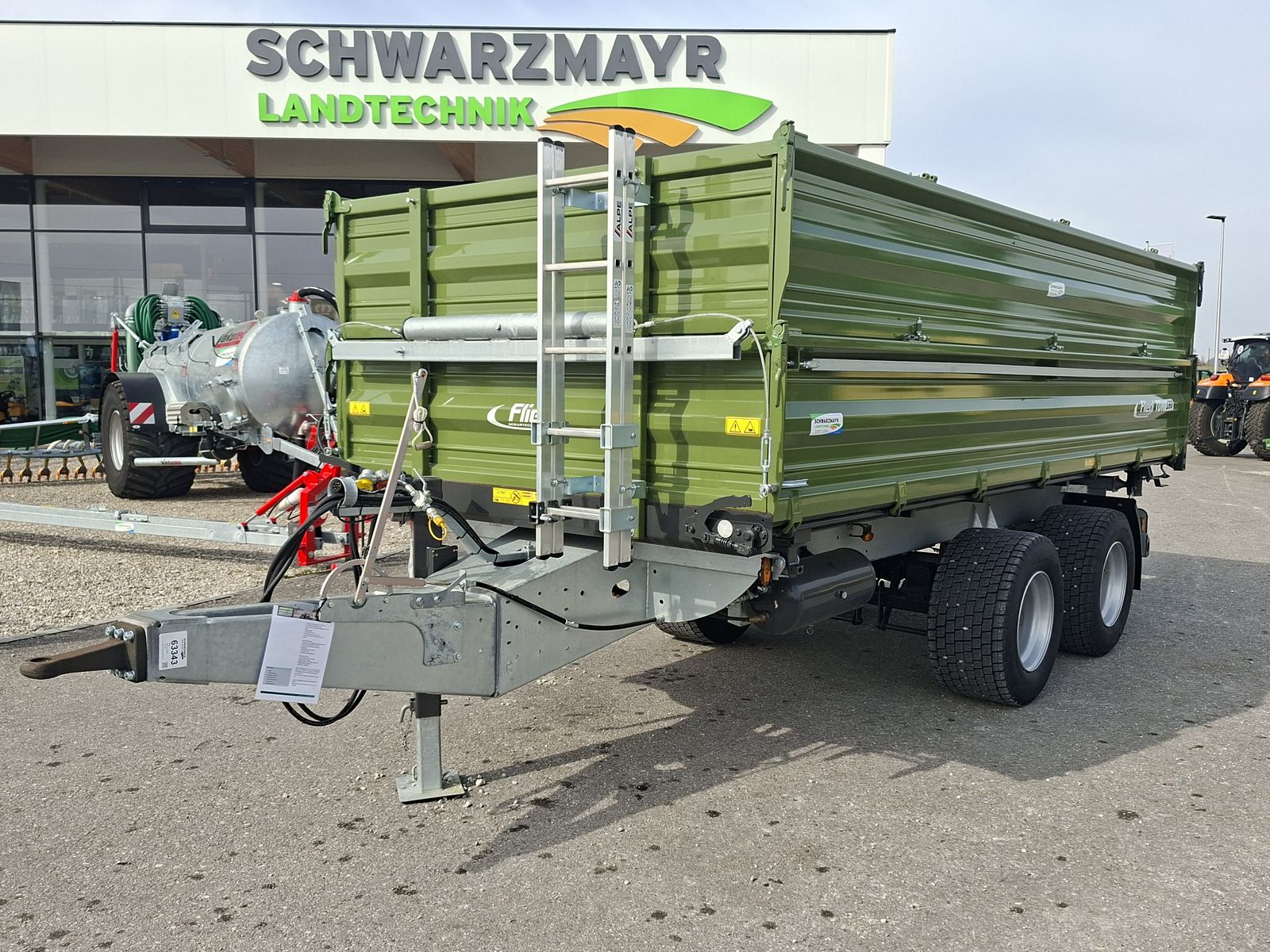 Nr. 63343 Tandem- 3-Seitenkipper - mit 5000x2320/2220mm konischer Brücke - mit 600mm Grundbordwand - mit Bordwandversteifung in 1. Bordwand - mit 400mm Kornauslauf - mit Zentralverriegelung links, rechts und hinten - mit 600mm Aufsetzwand abklappbar - mit pulverbeschichteten Bordwänden - mit 2.150mm Kippzylinder mit Endabschaltung - mit verzinktem Rahmen - mit Obenanhängung - mit DIN-Zugöse 40mm - mit Parabelfederung Titan-Aggregat - mit 16to. Gesamtgewicht (entspricht 14to. Achslast zzgl. 2to. Stützlast) - mit BPW Bremsachsen 400x80mm - mit DL-Bremsanlage mit ALB Regler - mit 385/65 22,5 RE Bereifung - mit 40km/h EG Typengenehmigung und COC Papier - mit Kotflügeln - mit Unterfahrschutz - mit Seitenmarkierungsleuchten - mit 12V Fünfkammerleuchten mit 7-pol. Stecker Zusatzausrüstung: - mit Jumbo-Titan-Aggregat Niedrigbauweise - mit Bereifung 445/45 R19.5 NEU - mit Bordwandhebefedern schwere Ausführung - mit Stützfuß mit 2 Geschw. - mit Spannkette Technische Daten: - zul. Gesamtgewicht: 16000kg - Eigengewicht: 3500kg - Brückengröße innen: 5000 / 2320 mm - Plattformhöhe: 1350mm - Spurweite: 1850mm Das Verkaufsteam der Fa. Schwarzmayr zeigt Ihnen das Gerät/Maschine gerne und bittet um Terminabsprache zwecks Besichtigung bei uns am Betrieb. Wir sind auch samstags bis 12:00 Uhr für euch da! Gerne unterbreiten wir auch ein Angebot per Mail. Wir freuen uns auf einen Besuch oder auf eine Anfrage.