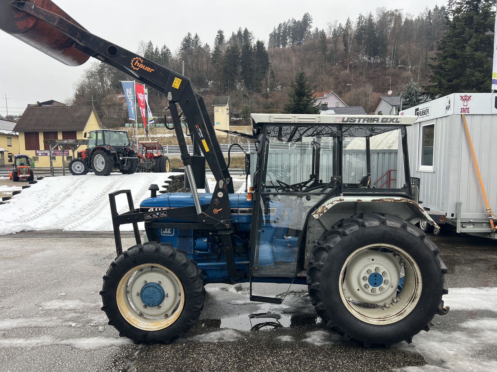 Ford 4110 A Serie II aus Erstbesitz mit wenigen Betriebsstunden sehr gepflegter Zustand * Fritzmeier Austria GXL Kabine samt Heizung * MHR Hydraulik mit Zusatzhubzylinder und Schnellkuppler Hubleistung 2.250 kg durchgehend * Anhängevorrichtung drehbar * 2 Steuergeräte samt zusätzlich Einhebelbedienung * neue §57 Überprüfung * alle Öle und Filter getauscht * großes Service wurde gemacht * Getriebe: 8v/4r * Optional sind Zwillingsreifen und Ketten vorhanden * samt Frontladerkonsole Hauer Oberrahmen * samt Hauer Frontlader mit Schaufel und Gabel Jederzeit nach tel. Terminabsprache zu besichtigen. Alle Angaben ohne Gewähr. Inzahlungnahme ihres Altgerätes, Zustellung/Abholung jederzeit möglich.