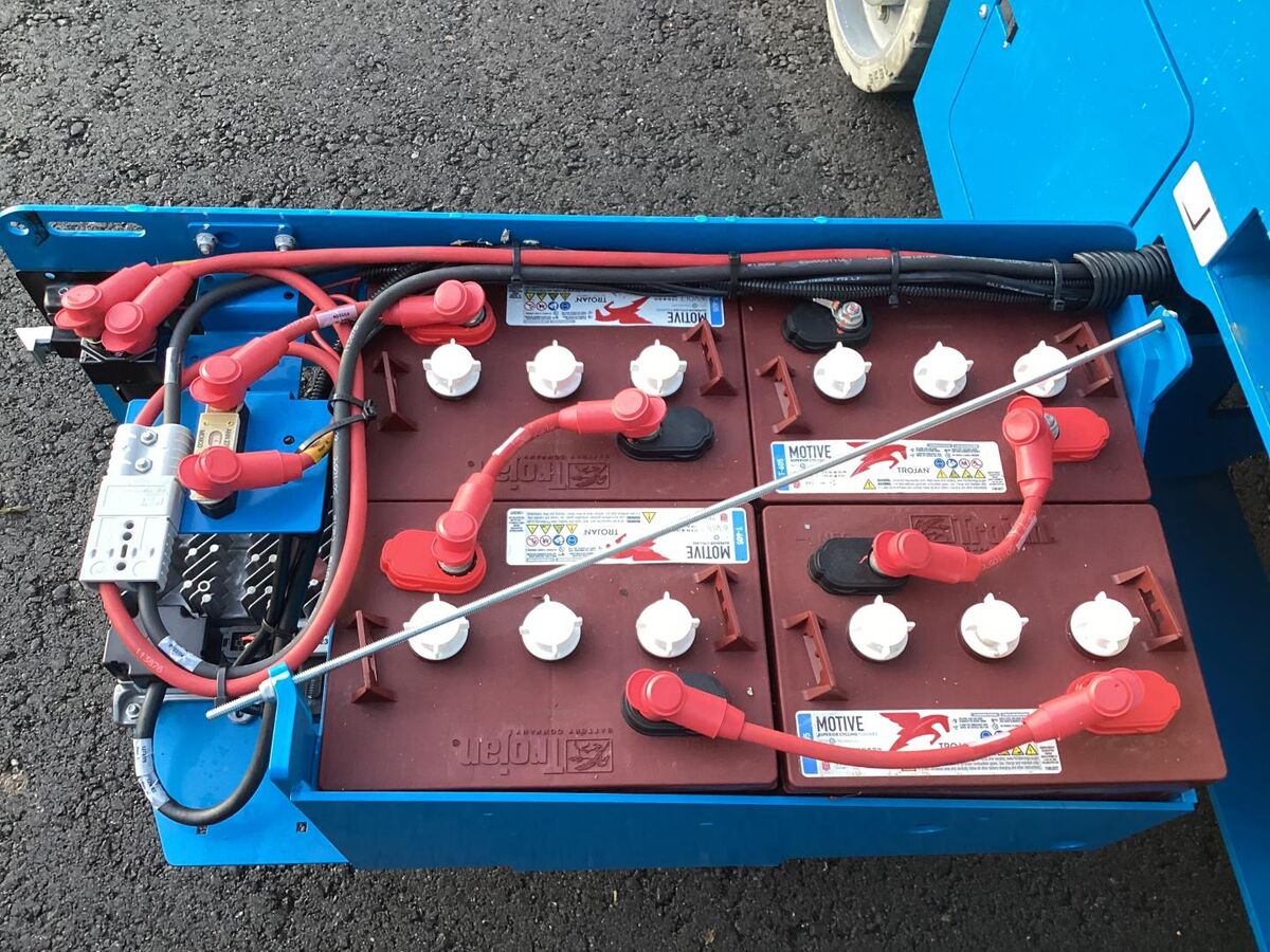 Bauart: Arbeitsbühnen / Scherenarbeitsbühne, Tragkraft: 318kg, Bauhöhe: 2440mm, Batterie: 24V , Bereifung vorne: Vollgummi Einfach 80 - 100% , Bereifung hinten: Vollgummi Einfach 80 - 100% , Beschreibung: Plattformausschub: 910mm Plattformhöhe: 9.780mm Ladegerät integriert