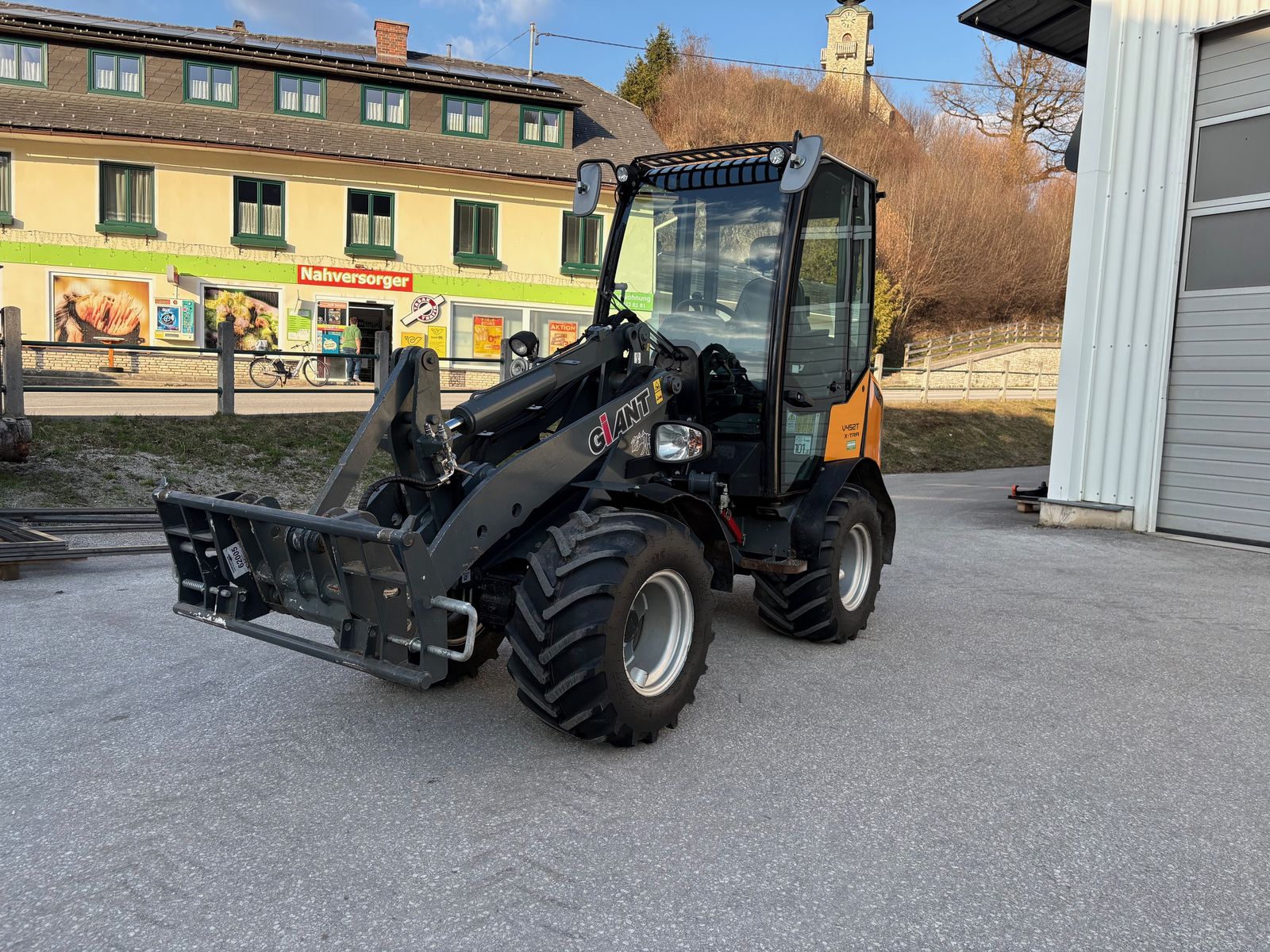 Schöner Giant Hoftrak V452T X-TRA - Selbstsperrdifferential in beiden Achsen - 2200 KG Hubkraft - 2600 KG Kipplast gerade - 45 PS Kubota-Motor - Kabine mit Heizung - Radio - hydr. Neigungsausgleich am Knick-Pendel-Gelenk - Giant-Aufnahme mit hydr. Verriegelung - inkl. Schaufel und Palettengabel mit Giant-Aufnahme - Euro-Adapter mit mech. Verriegelung - Bereifung 31x15.50-15 (vor ca. 75 Bstd. erneuert) - 3. Kreis - Arbeitsscheinwerfer vorne und hinten - Schnellgang 20 Km/h unter Last schaltbar