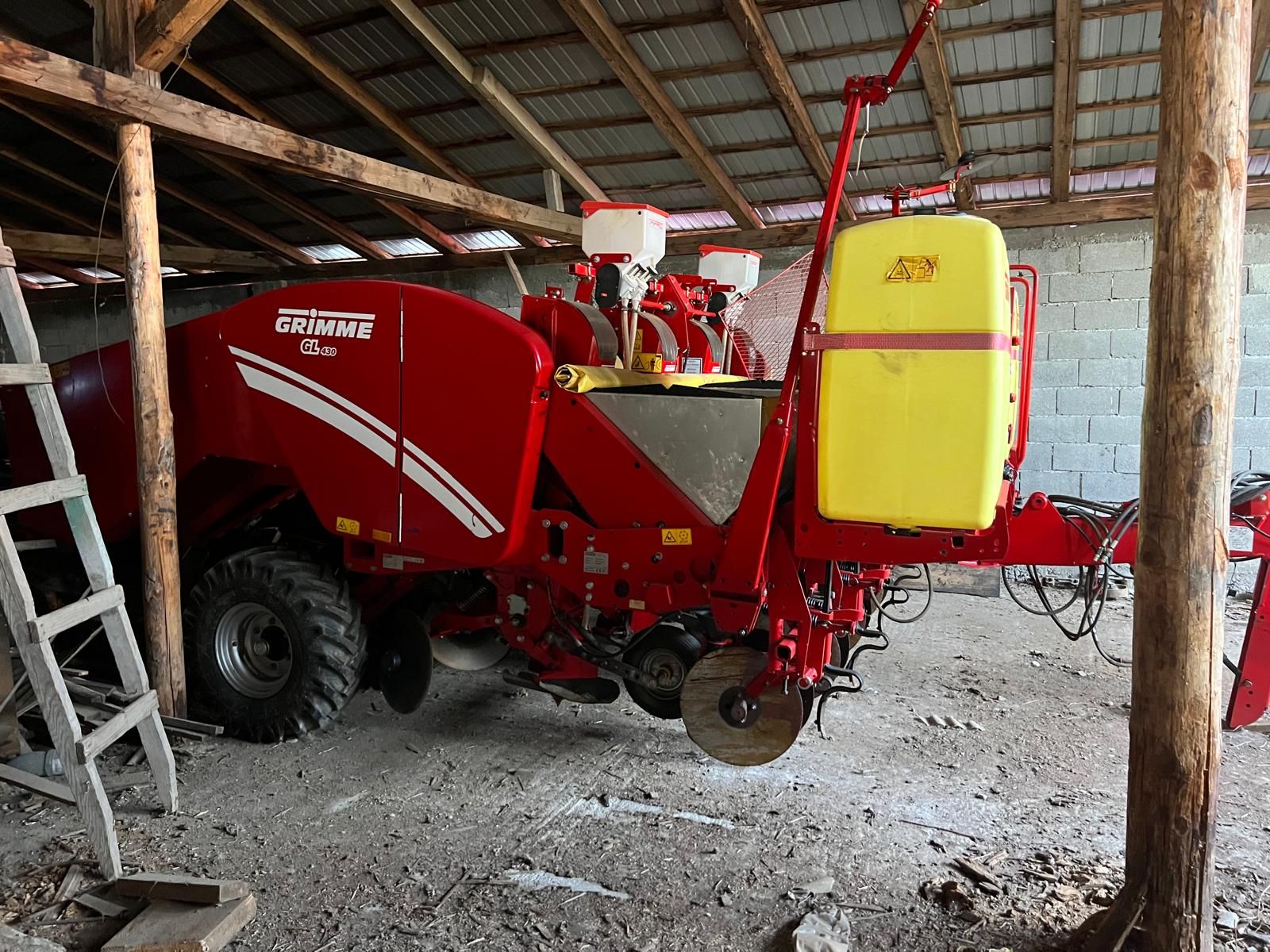 Grimme trailed potato planter Model: GL 430 Year: 2017 • New (unused) liquid tank • Hydraulic stainless steel bunker – 3-ton capacity for seed potatoes • Equipped with 3 front ridgers • Vibration system for accurate planting Equipped with: – Liquid treatment unit • 2 tanks of 900 liters each – Microgranulator – Fertilizer distributor