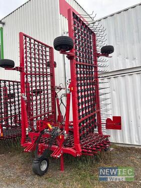 CURA 9 ST Horsch Striegel Cura 9 ST klappbarer Rahmen 3-teilig Anhängung 3-Punkt Kat.II/III 6-Reihen Striegelzinken Balkenabstand 200 mm Strichabstand 28 mm Rahmenhöhe 450 mm Stützräder 18/18.5-8 mit Abstreifer für die hinteren Räder 3 mtr. Transportbreite Striegelzinken-Vorspannung mit Zugfeder doppelt, hydraulisch verstellbar stufenlose Verstellung der Striegel- zinkenvorspannung Striegelzinken HM 60 mm Hartmetallbeschichtung für Standard- & Mulchsaatzinken geeignet. Nachlaufstriegel - nur für die hinteren 6 Räder
