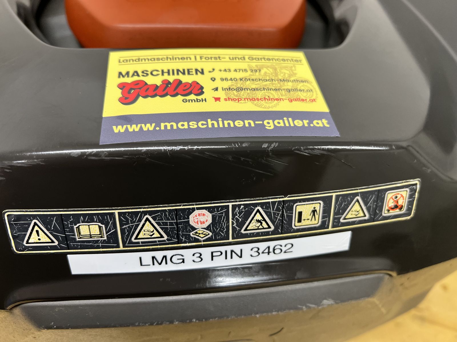 Der Automower verfügt über neue Messer und ist komplett mit Ladestation, Trafo und Niederspannungskabel.