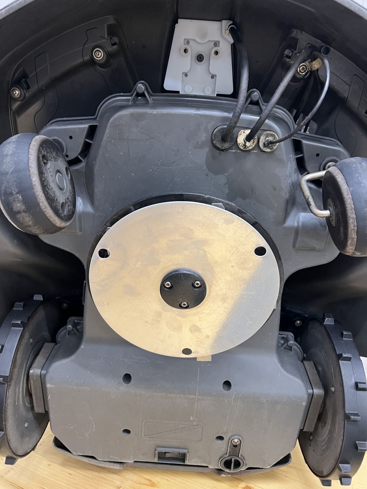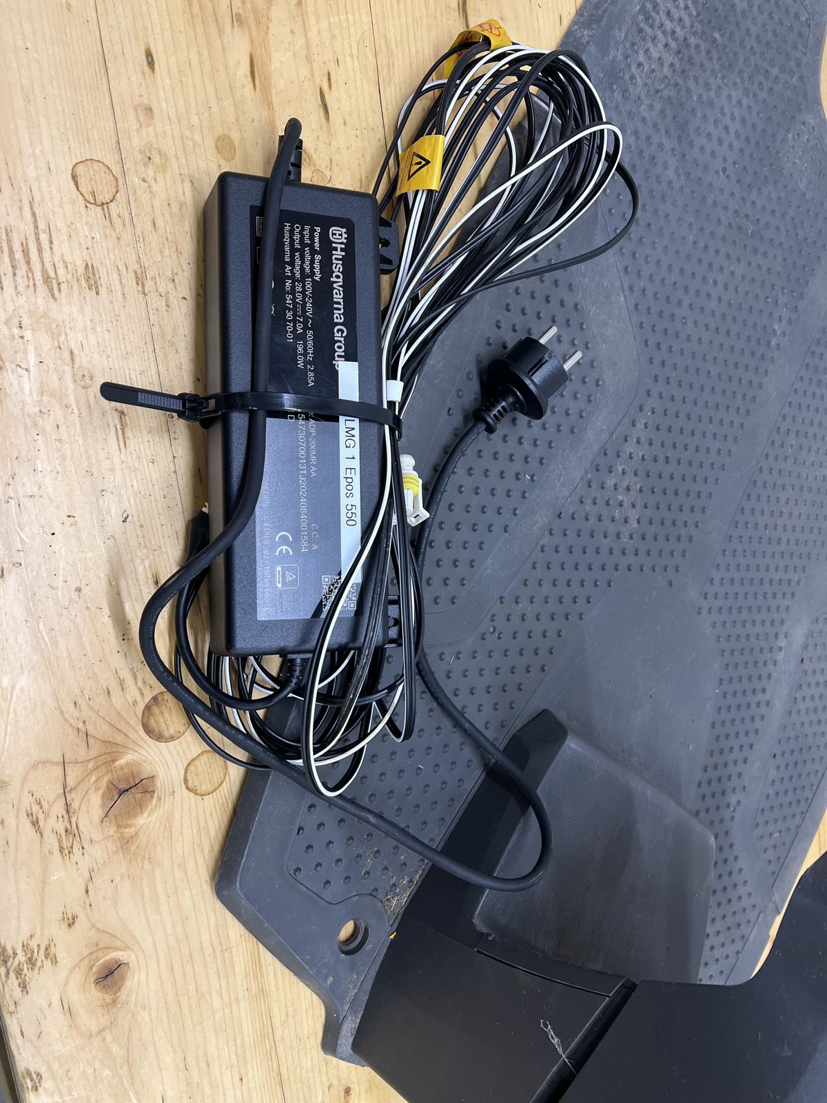Der Automower verfügt über neue Messer und ist komplett mit Ladestation, Trafo und Niederspannungskabel.