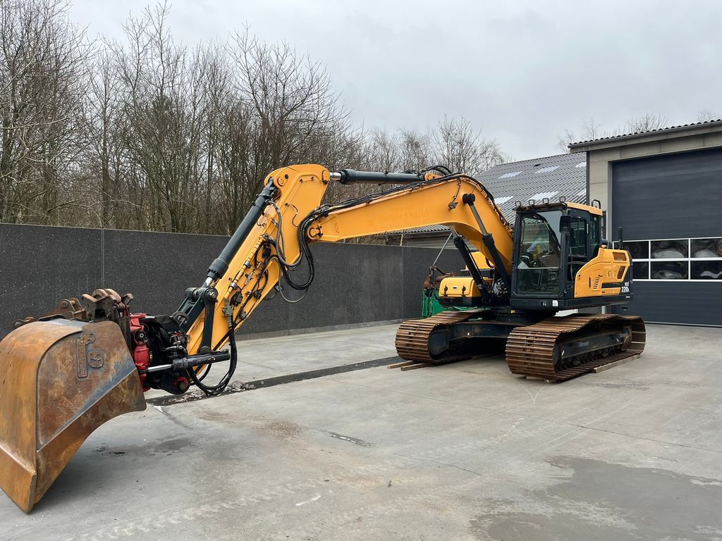 HYUNDAI HX220L gravemaskine fra 2017 med ICS maskin styresystem med autokalibrering og Rotortilt R6 med multi top til S70 skifte og Gribeklo model RG850. Den er udstyret med en ROPS-kabine