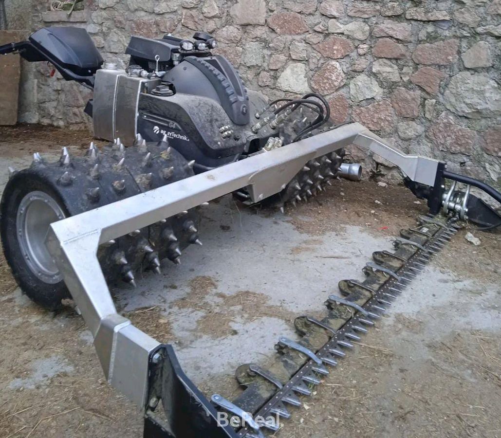 hydrostatischer Einachs-Mäher mit Achsverschiebung, Doppelmessermähwerk 2,60m, LS-Grip-Stachelräder, Allroundmax auch verfügbar 8.000,00 + MwSt., weiters ist eine Schneefräse sowie ein Mulcher MÜTHING zu diesem Einachs-Mäher verfügbar
