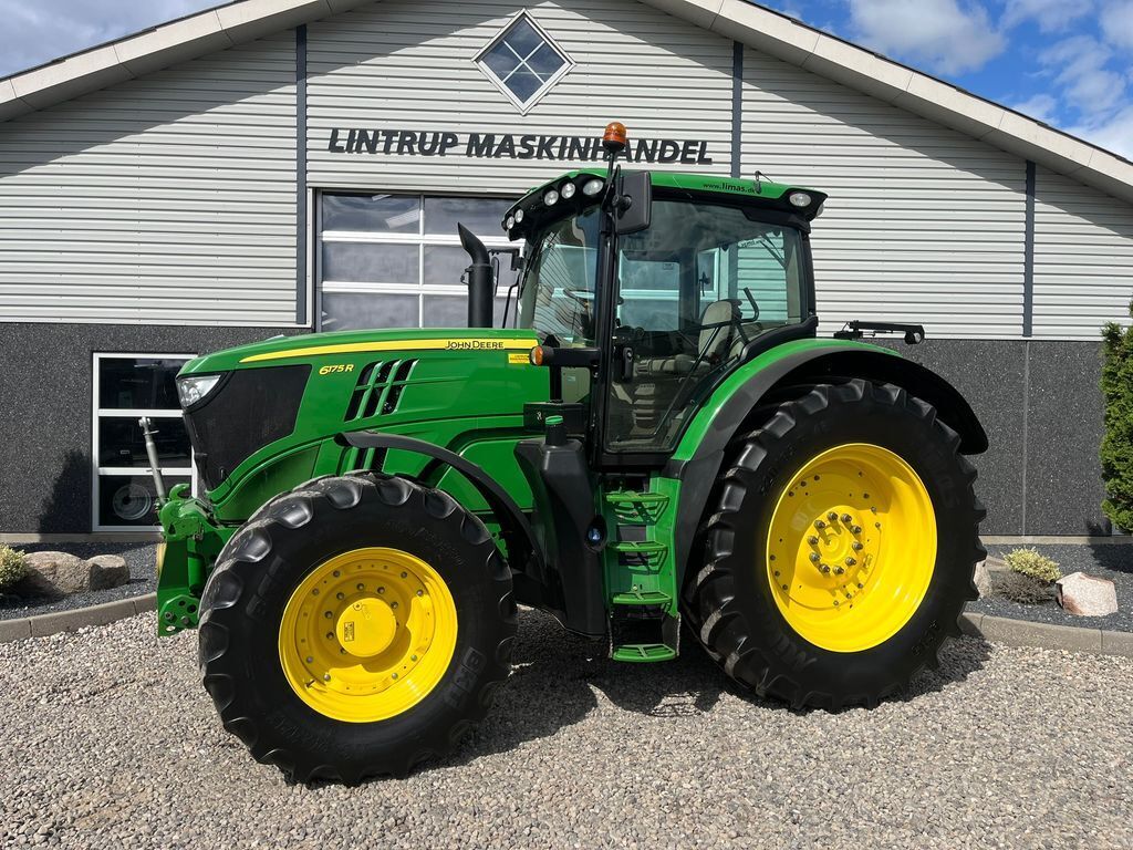 == Flere oplysninger (DK) == Antal gear frem/bak: DirectDriv Er til salg: Til salg nu John Deere 6175R med frontlift og frontPTO og affejederet foraksel (ILS) og affejederet kabine. I bag er der 3stk dobbeltvirkende olieudtag fri retur og luftanlæg samt Isobus. Højt vogntræk. 540E/1000/1000E pto omd. I for sidder der frontlift og frontPTO og der er 1 dobbeltvirkende udtag ført frem til liften. Dækmonteringen er 460/85R30 og 520/85R46. Den har 4stk arbejdslygter bagud 1ud til hver side og 8stk stk frem efter. Teleskop spejle. Inden i er der luftsæde med varme og commando armlæn passagersæde og køleskab. Autotrack / GPS ready. Den er registreret første gang den 18.6.2015 og vi har den originale registringsattest til den. Vi hjælper gerne med finansiering og tager gerne dine brugte traktorer i bytte og Køb-Salg-Bytte-Udlejning se altid over 100 brugte traktorer til salg på vores webside limas.dk We live in Denmark only 78km from the Danish-German border crossing in Flensburg and only 38km from Billund Airport - BLL. You are very welcome to come and visit us then you can see the machine physically for yourself. If you wish we will be happy to send a lot of pictures and video of it on Wats-App or email Med førerhus Vendegear Frontlift
