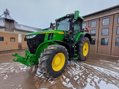 Motor: John Deere PowerTech 6 Zylinder 9,0l Hubraum ----------------- Getriebe: AutoPowr Stufenlos CommandPRO mit linearer Getriebesteuerung 40km/h Allrad ----------------- Achsen: gefederte Vorderachse ----------------- Kabine: Kabinenfederung Klimaanlage Luftsitz Radio ----------------- Technik: 6 doppeltwirkende Steuergeräte elektrisch Stabilisierungsstreben Hydraulikpumpe 227l/min Zapfwelle 540E-1000-1000E U/min Frontkraftheber Frontzapfwelle automatische Anhängekupplung K 80 Vorbereitung für Zusatzdruckversorgung Intelligent Power Management Tractor Implement Management Hydraulische Servolenkung Heckkraftheber 7,8t Fußbetätigte Drehzahlsteuerung Integrierte Rundumleuchten Anhängerbremse, 2 Leitungs-Druckluftsystem Frontkotflügel schwenkbar ----------------- Preis gilt für vorhandenen Zustand. Angebotfreibleibend. Irrtümer, Änderungen undZwischenverkauf vorbehalten. Alle Angaben ohneGewähr.