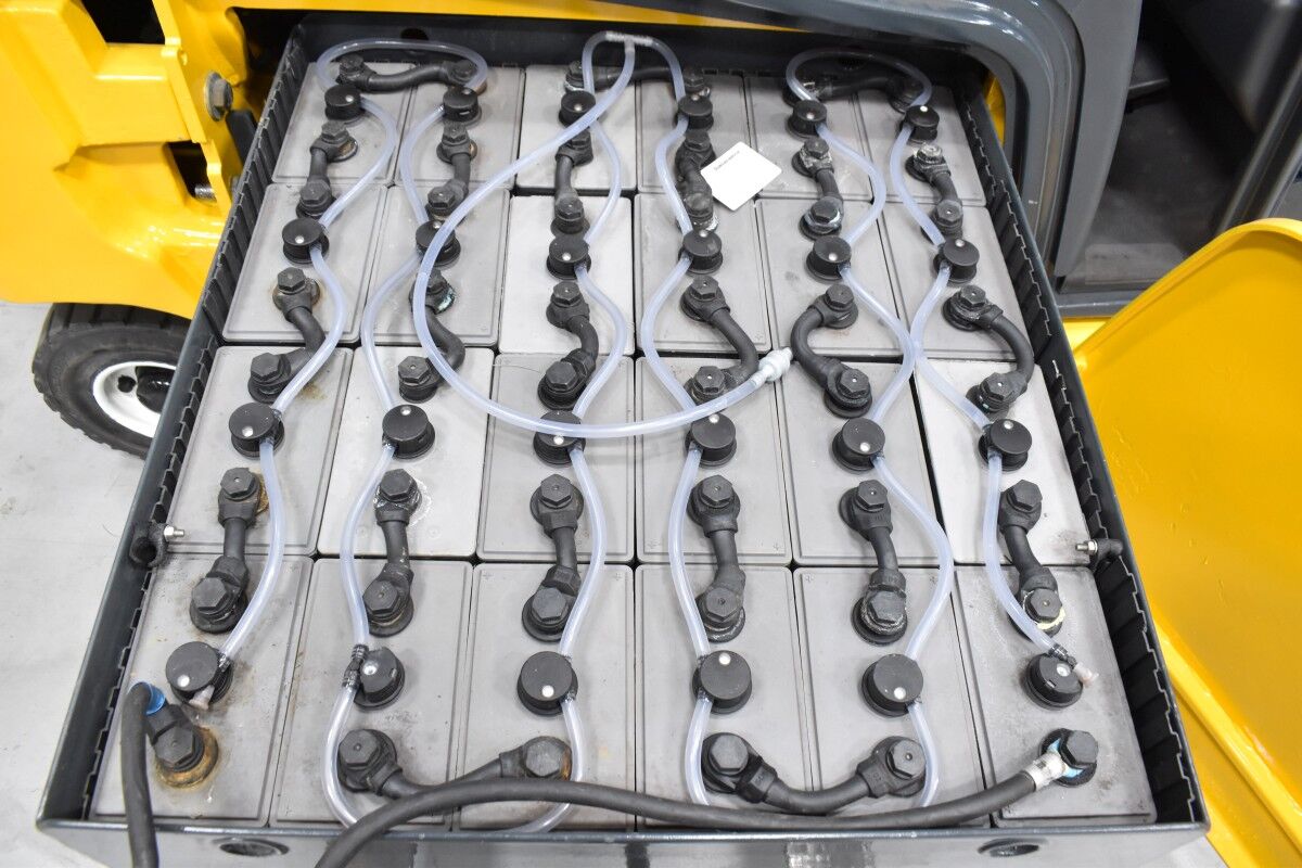 Bauart: Frontstapler / Elektro 4 Rad-Stapler, Tragkraft: 1600kg, Hubhöhe: 4500mm, Bauhöhe: 2030mm, Freihub: 1600mm, Gabellänge: 1150mm, Batterie: Bj. 2010 48V 750Ah Zustand: 80 - 100%, Bereifung vorne: Superelastik Einfach 60 - 80% , Bereifung hinten: Superelastik Einfach 40 - 60% , Anbaugeräte: Seitenschieber, Sonderausstattung: 3. Ventil, Arbeitsscheinwerfer vorn, Sonderausstattungbeschreibung: Aquamatic Beschreibung: -Stapler ist in einen guten zustand -Batterie ink Ladegerät NEU -Service und Prüfung NEU