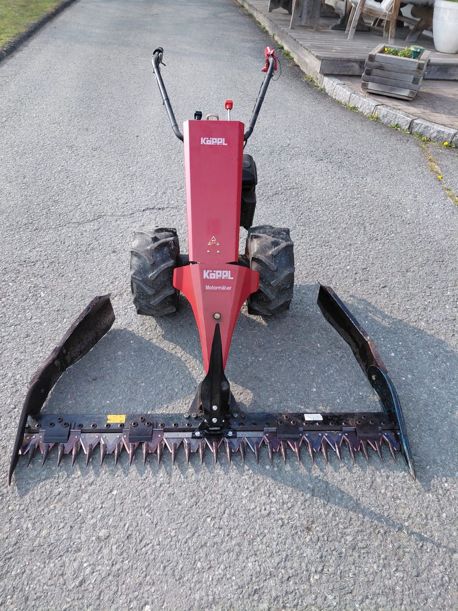 + Köppl Motormäher 3H 506 + 1,45m Fingerbalken - + NEUER MESSERKOPF, NEUES MESSER, NEUES ABWEISBLECH im Wert von 800€ + breite Ballon Räder + 3 Vorwärts- und 3 Rückwärtsgänge + Motor- und Getriebeöl NEU sehr schöner Zustand!