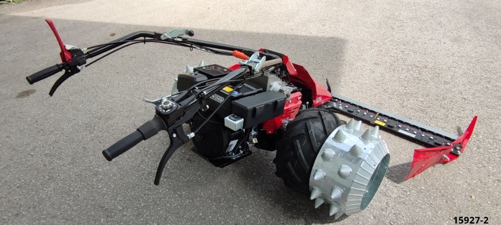 Fahrantrieb: stufenloser hydraulischer Fahrantrieb Geschwindigkeitsverstellung über Drehgriff, Standradblockierung Freilaufschaltung: Bypassventil für Schiebebetrieb Geschwindigkeit: Vorwärts 0 - 8 km/h, Rückwärts 0 - 4 km/h Lenkung: Turnaround-Aktivlenkung , Zero turn Hangtauglichkeit bis 120% Holm: Vibrationsgedämpfter Holm, werkzeuglose . Höheneinstellung Kupplung: Druckbremskupplung Zapfwelle: Mechanisch 837 U/min inkl. Zubehör: Betriebsstundenzähler, Geräte-Schnellwechselflansch, Motoransaugschutzgitter, Werkzeugbox 4-Takt-Benzinmotor 6,7 kw / 9,1 PS mit Kraftstoffförderpumpe *Bereifung 18x9.50x8 *Stachelwalzen 2 Reihig *Fanghackenflansch *Profi Schwinghebel-Antrieb mit Ratschkupplung *Mittelschnitt-Fingerbalken 193cm