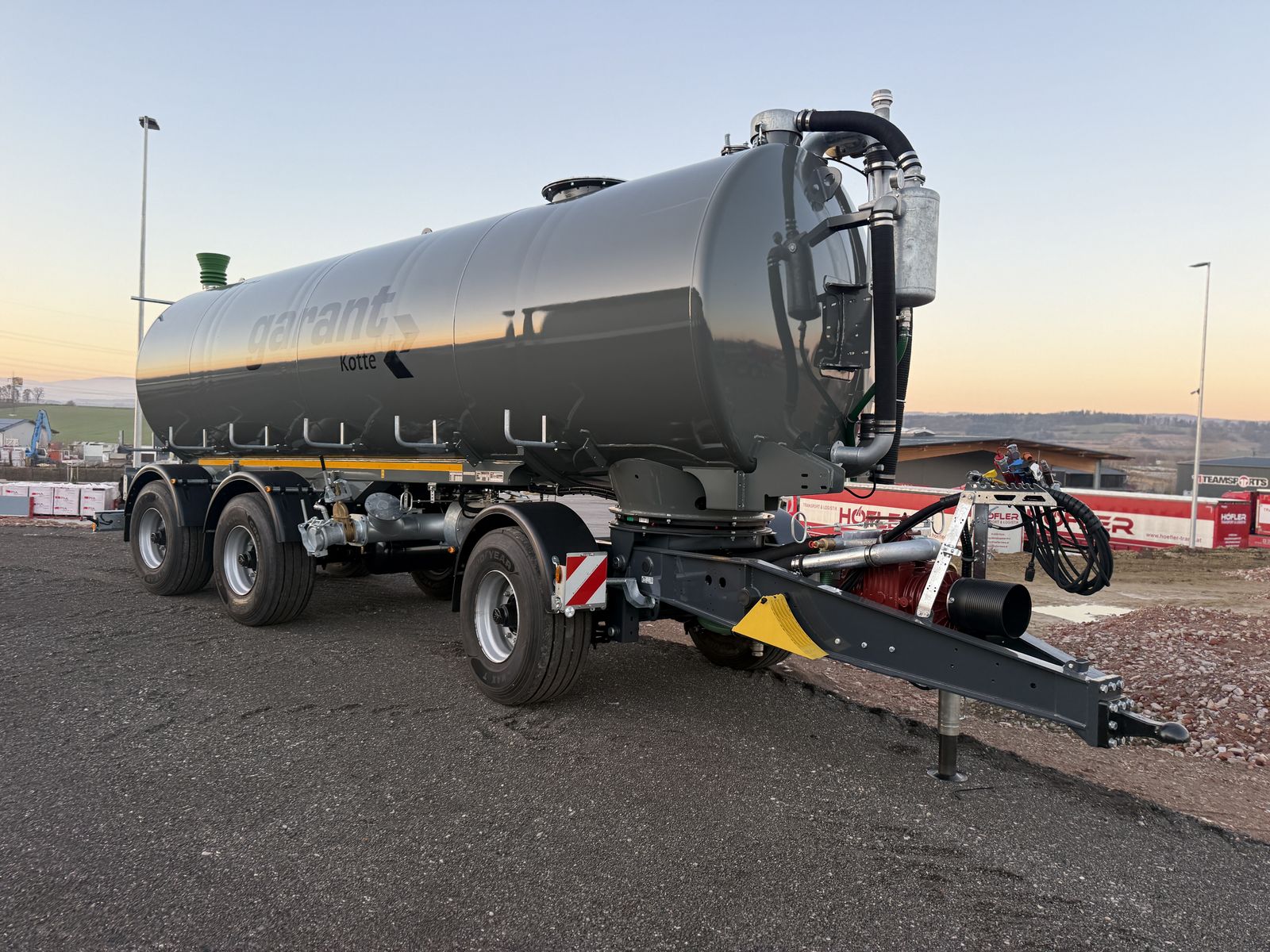Kotte TAV 26 Gesamgewicht 33 Tonnen Ca. 8 Tonnen Eigengewicht Nutzlast 25 Tonne 40 km/h COC Papiere Bereifung 445/65 R22,5 Luftfahrwerk von BPW mit Nachlauflenkachse Turbofüller mit Ansaug links uns rechts Schwenkelement hinten Sonderfarbe