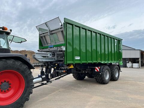 KRÖGER - agroliner Tandem-Abschiebewagen TAW20 24 to. zul. Gesamtgewicht (davon 4to Stützlast) in serienmäßiger Grundausstattung gemäß Datenblatt P-TAW20.16 (techn. Änderungen vorbehalten; serienmäßig dürfen Fahrzeuge diesen Fahrzeugtyps nur hinter LoF-Zugfahrzeugen mitgeführt werden, ansonsten ist eine spezielle Fahrzeugausstattung zu wählen; Beratung erforderlich) - Bordwandhöhe ca. 2150mm anstatt 2020mm - Aufbaulänge ca. 8100mm anstatt7100mm - Kornschieber ohne Schütte mittig in Heckbordwand - 6/2 Wegeventil für 2 dw Funktionen, Umschaltweiche auf ein dw. Steuergerät - Abschleppvorrichtung am Heck - hydraulisch höhenverstellbare Zugeinrichtung über Stickstoffspeicher gedämpft (dw. Steuergerät erforderlich, nur in Verbindung mit hydr. Stützfuß) - hydraulischer Stützfuß anstatt mechanische Stützwinde (dw Steuergerät erforderlich) - SCHARMÜLLER Rundschaftzugkopf Typ K80 bis 4 to Stützlast - Positions- und Kennzeichenleuchten in LED-Ausführung - 3-Kammer-Rückleuchten eckig, LED-Ausführung montiert an Heckklappe - 2 x LED-Rückfahrscheinwerfer am Fahrzeugheck - LED-Arbeitsscheinwerfer an Stirnwand für Laderaumausleuchtung - 2 x LED-Rückahrscheinwerfer seitlich am Chassis montiert - Hydraulikschlauchkennzeichnung "Kennfixx" - Achsabstand > 1800mm für Gesamtgewicht 24to (nur in Verbindung mit verstärkten Achsen) - hydr. Federaggregat inkl. BPW.Achsen (max. 60 km/h), 2150mm Spur, zweite Achse zwangs- gelenkt, Achslast 11 to (bei 60 km/h); Radbremse 410 x 180mm, Achsvierkant 150mm (Bremszylinder oben liegend) - Kontrollleuchte für ordnungsgem. Verriegelung der hydr. Heckklappe (3-polige Steckdose 12 Volt erforderlich) - Lenkschubstange Zwangslenkung mit zusätzlicher Teleskopautomatik Ausführung als gekröpfte Lenkschubstange mit Aufnahme für Kugel K50 auf der LINKEN Seite - Bereifung "neu" 710/50 R26,5 BKT FLOATATION RADIAL ULTRA, Profil FL 630, (65 km/h) 170D (Tragfähigkeit bei 1,5bar 10km/h = 5305kg) Felgen mit Einpresstiefe ET-50mm, d.h. Spur wird breiter - 40 km/h Zulassung gemäß EU-Typengenehmigung, Auslieferung mit COC Papieren - Sonderlackierung Chassis: RAL 7021 Schwarzgrau Der Preis der Maschine bezieht sich auf den technischen Zustand und die Ausrüstung wie lagernd. Standort Filiale: Colmar - Berg / Luxembourg. Aus etwaigen Irrtümern und falschen Angaben entstehen keinerlei Ansprüche. Weitere Auskunft erteilt Ihnen gerne unser Verkaufsteam Herr Kruppert, Herr Schrenger oder Herr Daniels.