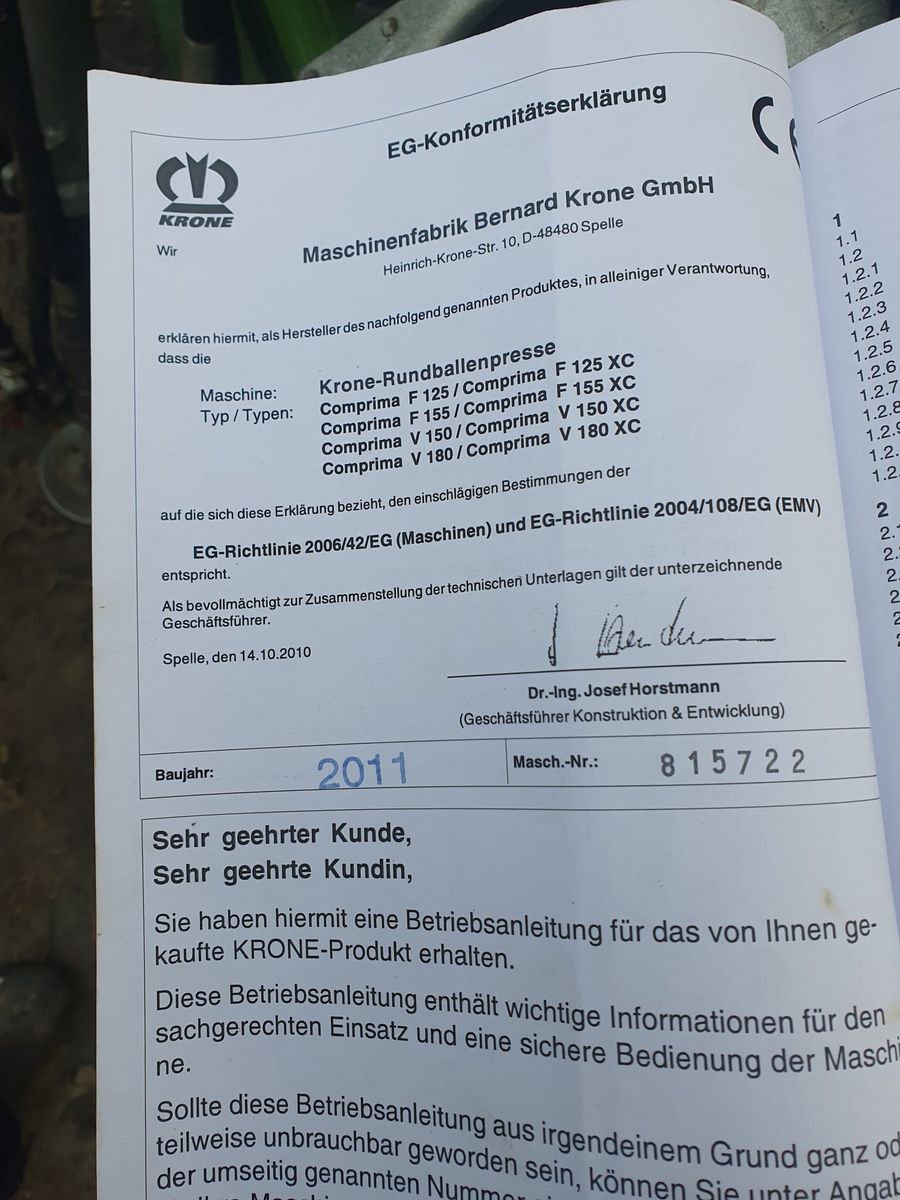 mit absenkbarem Schneidwerksboden,Bereifung 500/50-17 Flotation,Weitwinkelgelenkwelle,Hintereer Rollboden vor 3000 Ballen gewechselt,mit Beta Bedienung,17 Messer Schneidwerk,,Ballengöße von 1-1,5 m,wegen Betriebsumstellung abzugeben