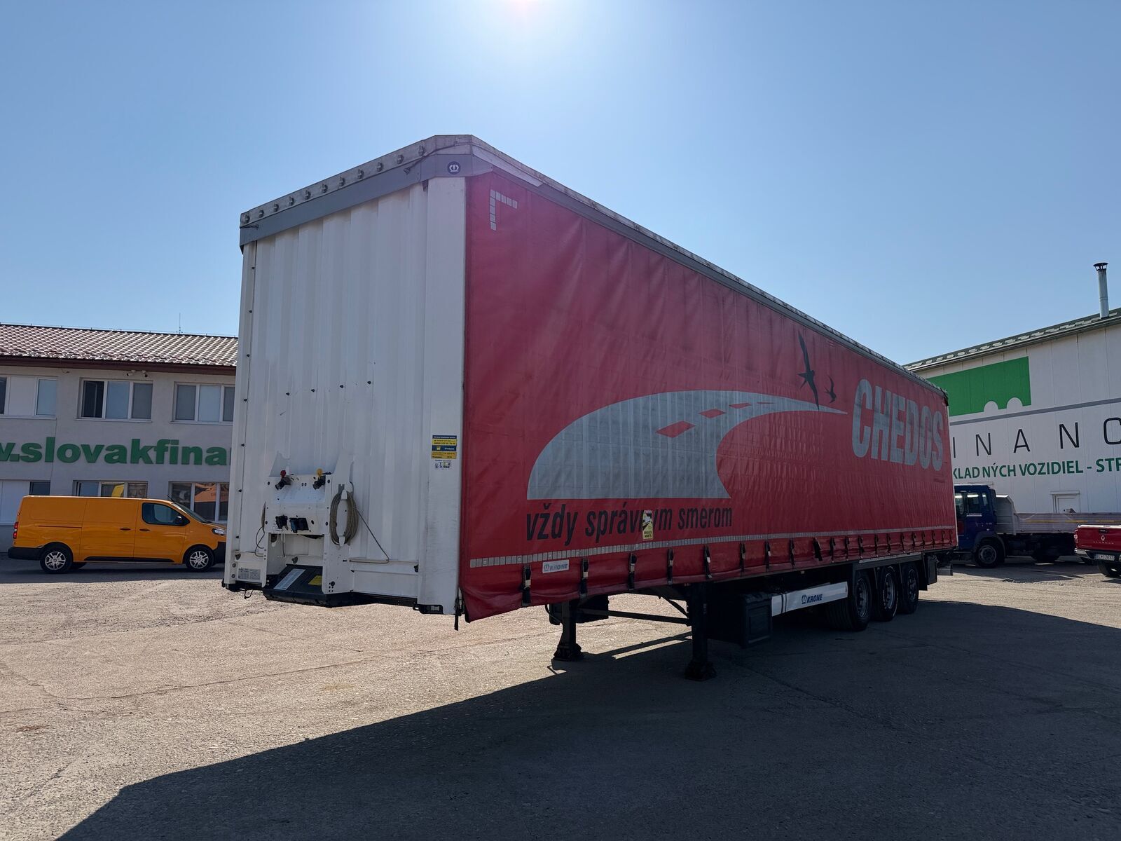 == Dodatočné informácie (SK) == KRONE SD LOWDECK trojstrannka r.v. 10/2018, zdvíhacia náprava, kotúčové brzdy, vnútorná výška: 3m, mechanický prízdvih strechy: 3,3m, neprezerateľná plachta, váha: 6625 kg, celková hmotnosť: 36000 kg, nápravy SAF, stav pneu: 40%, CENA=7.900 EUR+DPH Ponúknite Vaše vozidlo na protihodnotu, rozdiel môžete doplatiť aj formou splátok. Využite možnosť komisionálneho predaja. Poskytujeme výhodné financovanie prostredníctvom leasingu alebo úveru podľa požiadaviek klienta