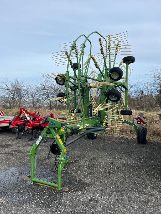 2-Kreisel-Mittelschwader, gezogen, Arbeitsbreite: 6,80 - 7,60 m, Schwadbreite: ca. 1,00 - 1,80 m, Gewicht ca. 1.950 kg, Kreiseldurchmesser: 3,30 m, 2 x 13 Zinkenarme, manuell verstellbare Arbeitsbreite, Kreiselhöhenverstellung per Handkurbe, Kreiselhöhenanzeige, Bereifung 15.0/55-17 10 PR, Transportbreite 2,89 m, Kreiselbereifung 16x6.50-8, Klappbare Zinkenarme, hydr. Einkreiselaushebung, Vorwahlschalthahn, Gezogene Kreiselaufhängung, Kardanische Kreiselaufhängung, KRONE Jet-Effekt, KRONE Dura-Max Kurvenbahn, Zinkenverlustsicherung, mech. Transportverriegelung, Vorgewendebegrenzung, Vier-Rad-Kreiselfahrwerk, Achsschemel-Zwangslenkung, LED-Beleuchtung,