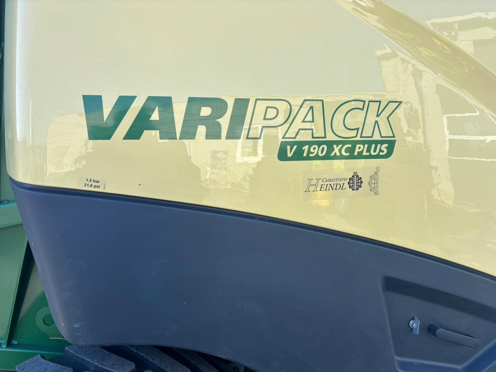 Neuwertige Krone Varipack V190 XC Plus - 5528 gepresste Ballen - BJ 2022 - 3 Gurten mit variabler Presskammer bis 190cm - 26 Messer Schneidwerk - 40 kmh Typisierung - 600 50 R22.5 Bereifung - Isobus - Rollenniederhalter - 2-Leiter Druckluftbremse - Zentralschmieranlage Der Preis der Maschine bezieht sich auf den technischen Zustand und die Ausrüstung wie lagernd. Standort Inning. Aus etwaigen Irrtümern und falschen Angaben entstehen keinerlei Ansprüche.