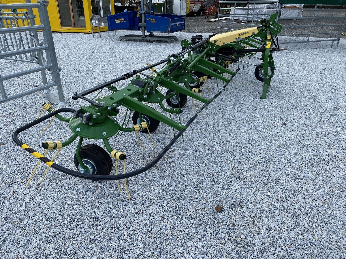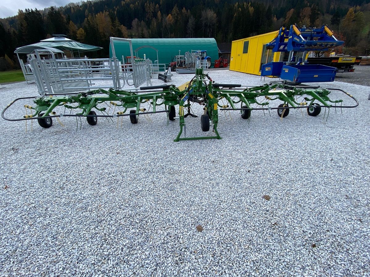 Sofort Verfügbar! Krone Vendro 820 Highland inkl. Tastrad & Hydr. Grenzstreu. Ausstattung & Details: - Dreipunktanbau Kat. 2 (Unterlenkerschwinge in zwei Positionen montierbar) inkl. pendelnder Aufhängung mittels Kugelauge und Laufrolle - Hydraulische Dämpferstreben - Abstellkonzept mit zwei Abstellstützen (vorne & hinten) - Selbstzentrierung des Wenders beim Ausheben in Transportstellung - Kreiselanzahl: 8 - 5x Zinkenarme je Kreisel - Zinkenverlustsicherung - Zinkennachlauf dreifach verstellbar - Gewicht (kg): 915 - Transportbreite (m): 2.77 - Arbeitsbreite (m): 8.13 - Kreiseldurchmesser (m): 1.37 - Zapfwellendrehzahl (U/min): 540 - Erforderlicher Hydraulikanschlüsse: 1x DW - Leistungsbedarf (KW/PS): 48/65 - Wartungsfreie in Fließfett laufende Kreiselgetriebe - Wartungsfreie Octo-Link Fingerkupplungen - Kreisel durch Überlastschutzkupplung gegen Fremdkörperkontakt abgesichert - inkl. Gelenkwelle mit Freilauf und Überlastschutzkupplung - Dreidimensional geformter Krone Optiturn Zinken mit 3D-Effekt und ungleichlangen Zinkenschenkeln - Streuwinkelverstellung werkzeuglos 13-19° Inkl. Krone Zusatzausstattung: - B050 - Hydraulische Grenzstreueinrichtung - B520 - Vorderes Tastrad (schwenkbar) Besichtigung jederzeit nach telefonischer Absprache möglich! Zustellung in ganz Österreich möglich.