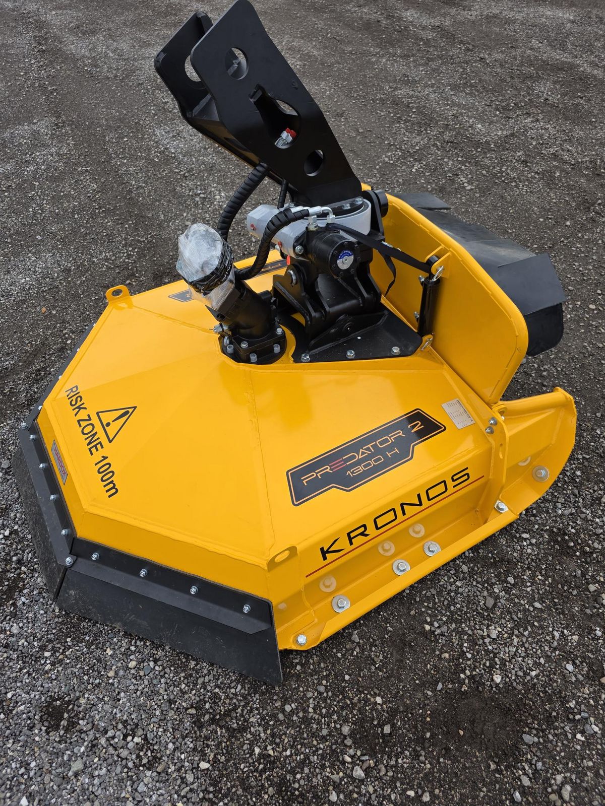 Kronos Kettenmulcher 1300 H mit Tilt und Neigungsgerät, Halterung für Kranspitzenanbau (Halterung für Std Kranspitze auch lieferbar) und mit hydr. Frontklappe. Verschleißkufen aus Hardox geschraubt. Inkl. Schock und Nachsaugventil Arbeitsbreite 1,3m. Erforderliche Ölmenge 100-150 Liter/min Öldruck 200-380 bar Eigengewicht (nur Mulchkopf) 315 KG (490 KG mit Tilt und Neigungsgerät)