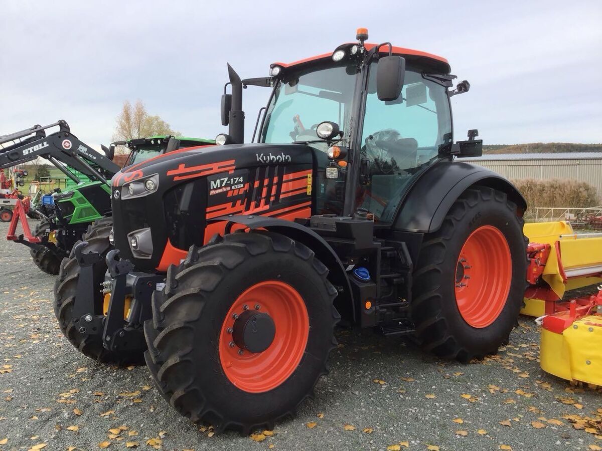 Geschwindigkeit: 50 km/h, Hydraulikleistung: 155, Motorhersteller: KUBOTA, Motor-Zylinderanzahl: 4, Getriebebezeichnung: KVT, Druckluftanlage (2-Kreis), Bordcomputer / Monitor, Dreipunkt / Heckhubwerkanhängung, Hydraulische Lenkung, Kabine, Rundumleuchte, Wendeschaltung, Lastabhängiger Zusatz-Hydraulikkreis (Power Beyond, Load Sensing), Diesel, ISOBUS, Arbeitsscheinwerfer LED Ausführung, Zugmaul - automatisch, höhenverstellbare Anhängevorrichtung, Dreipunkt-Außenbedienelement, Hydrauliksteuergeräte-Außenbedienung, Heckzapfwelle-Außenbedienung, Kabinenfederung (pneumatisch), Abgasnachbehandlung / AdBlue, Oberlenker hydraulisch (hinten) ________ Neumaschine steht am Standort Langenfeld (Industriestr. 5, 91474 Langenfeld, Tel. 09164-9985800) KUBOTA M7174 - Baujahr 2025 5 Jahre/3000 Stunden volle Werksgarantie Motor: 6.124 cm³, 4-Zylinder KUBOTA-Turbodieselmotor mit 4-Ventiltechnik, Power-Boost, Common-Rail-Direkteinspritzung, Ladeluftkühler, externe wassergekühlte Abgasrückführung (AGR), Dieselpartikelfilter (DPF), SCR-Katalyasator, Abgasstufe V nach Vo (EU) 2016/1628, Dieseltank 330 l, AdBlue® 38 l, Lichtmaschine 200 A, 2 programmierbare Drehzahlspeicher, 125 KW (170 PS) Nennleistung/129 KW (175 PS) mit Boost (Leistung nach UNECE No. 120) Getriebe: stufenloses KVT (Kubota Variable Transmission) Getriebe, Tempomat, Motor-Getriebe-Management, lastschaltbare Wendeschaltung, Fahrpedalmodus,2 elektrohydraulisch schaltbare Fahrbereiche, Multifunktionshebel, ECO-Speed (50 km/h bei reduzierter Motordrehzahl), Allradzuschaltung und Differenzialsperren vorn/hinten elektro-hydraulisch schaltbar Automatikfunktion (Lenkwinkel/Geschwindigkeit) Kabine: Pneumatische Kabinenfederung und Klimaautomatik, 4-Pfosten Kabine mit Panoramaseitenscheiben, Bedienarmlehne,Fahrersitz luftgefedert/schwenkbar, gepolsterter und klappbarer Beifahrersitz, 2 schliessbare Ablagefächer, Heckscheibenwischer, automatische Blinkerrückstellung, neigungs- & höhenverstellbares Lenkrad, Instrumententräger mit integriertem LCD-Display, 12" K-Monitor inklusive ISOBUS & Vorgewendemangement, 10 Full-LED Arbeitsscheinwerfer + LED-Fahrscheinwerfer, alt. Fahrscheinwerfer bei Verwendung von Frontanbaugeräten, Kabinenbeleuchtung, 2 LED Rundumleuchten Hydraulik: geschlossenes System (CCLS) inkl. Power Beyond mit Steueranschluss, hydraulischer Oberlenker 6x DW elektronische, freibelegbare Steuergeräte, davon 1x für DW-Anschlüsse vorne und 1x für Frontkraftheber, Förderleistung Hydraulikpumpe I (Arbeitshydraulik): 110 Liter/ min Förderleistung Hydraulikpumpe II (Lenkung/Getriebesteuerung): 45 Liter/ min EHR, Unterlenker Kat. III, beidseitig automatische Unterlenkerstabilisatoren, 9.400 kg Hubkraft Fahrwerk: gefederte Vorderachse; automatische höhenverstellbare Anhängerkupplung; Frontkraftheber; Frontladervorbereitung; schwenkbare Kotflügel vorne, Kotflügelverbreiterung hinten; Druckluftbremsanlage (2-Leiter); Auto Steer ready, Multi Speed Steering Control, Kubota Connect Bereifung: vorne: 540/65 R28 Fabrikat: Michelin hinten: 650/65 R38 Fabrikat: Michelin