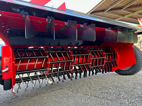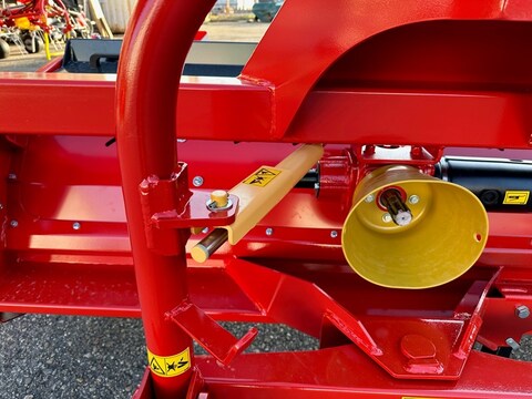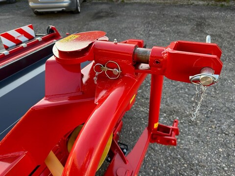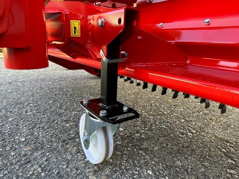 Dreipunkt-Schwenkbock Kat.2, 8 Zinkenreihen, 4-fach einstellbarer Aufbereitungskamm, stufenlos einstellbare Breitstreuvorrichtung, hydr. Stossdämpfer in Schwenkbock, grosse Laufräder 215/65-15", Antrieb 540 U/min, Warntafeln, Gelenkwelle mit Freilauf