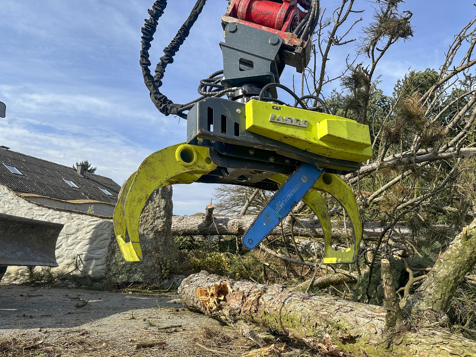 Die sichere Problembaumfällung ist ein zusätzliches Einsatzgebiet der DUOSCORP Greiferäge. So können stehende Bäume mit einem Durchmesser von 20 cm über Stock problemlos entnommen werden.