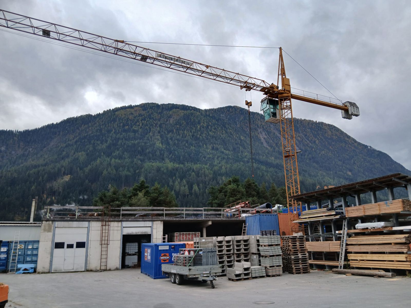 mit Funkfernbedienung, 15m Grundturm, 30 Meter Auslegerlänge ohne Fundamentkreuz Kran ist bis Mitte Februar im aufgebautem Zustand zu Besichtigen. Verladung kann im Zuge des Abbaus durchgeführt werden.