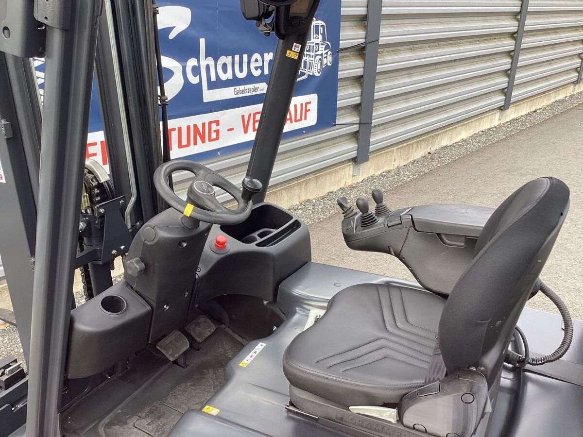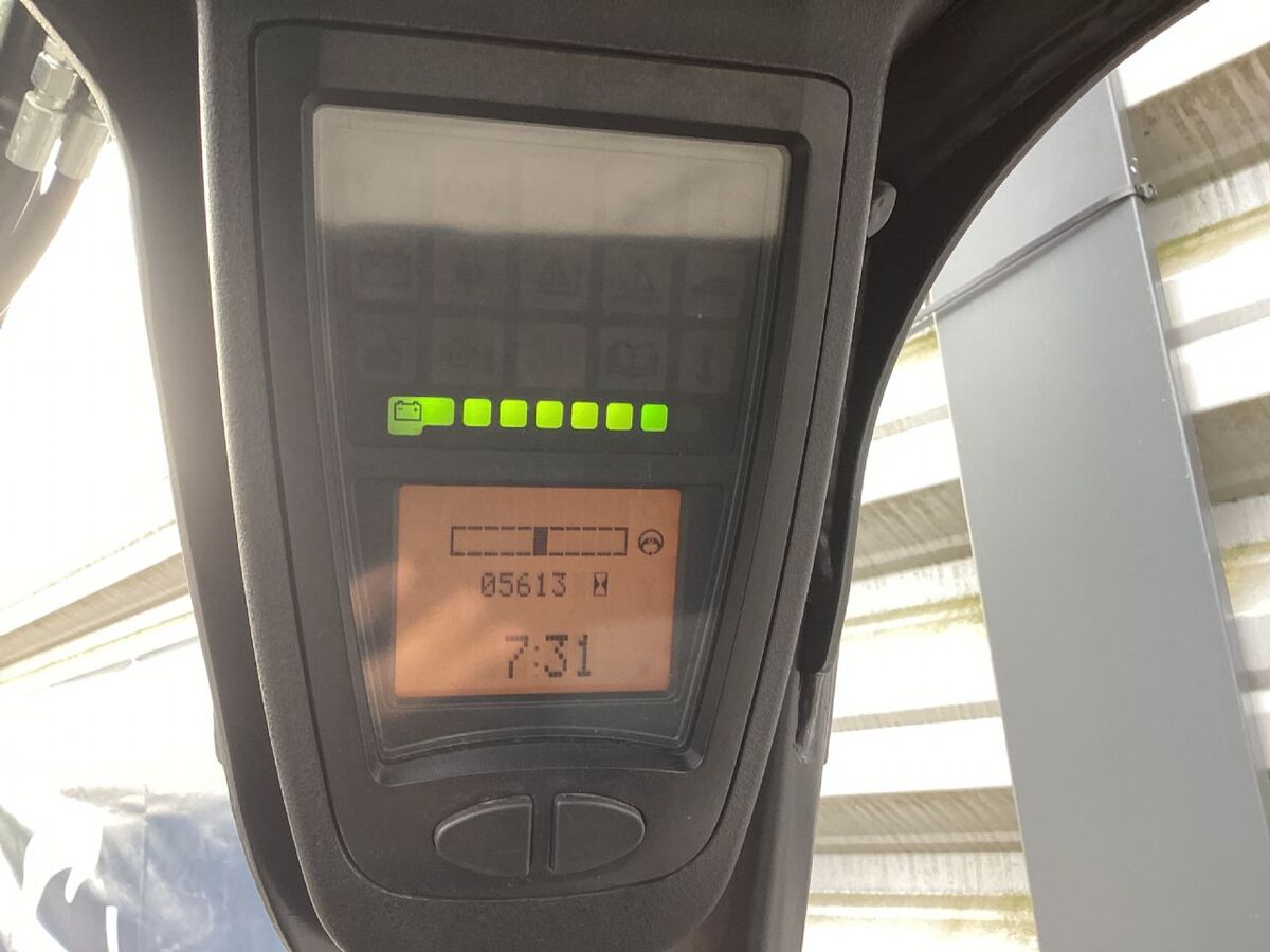 Bauart: Frontstapler / Elektro 3 Rad-Stapler, Tragkraft: 1600kg, Hubhöhe: 4620mm, Bauhöhe: 2110mm, Freihub: 1540mm, Gabellänge: 1200mm, Batterie: Bj. 2016 48V 625Ah , Bereifung vorne: Superelastik Einfach 60 - 80% , Bereifung hinten: Superelastik Einfach 60 - 80% , Anbaugeräte: Seitenschieber, Sonderausstattung: 3. Ventil, Arbeitsscheinwerfer vorn, Safety Light, Sonderausstattungbeschreibung: Rundumleuchte