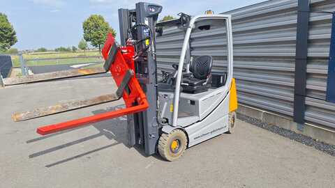 Bauart: Frontstapler / Elektro 3 Rad-Stapler, Tragkraft: 1800kg, Hubhöhe: 4620mm, Bauhöhe: 2110mm, Freihub: 1600mm, Gabellänge: 1000mm, Batterie: Bj. 2011 48V 625Ah , Bereifung vorne: Vollgummi Einfach 80 - 100% , Bereifung hinten: Vollgummi Einfach 80 - 100% , Anbaugeräte: Seitenschieber, Sonderausstattung: 3. Ventil, Arbeitsscheinwerfer vorn, Sonderausstattungbeschreibung: lackiert Beschreibung: -Batterie und Ladegerät NEU -Service NEU