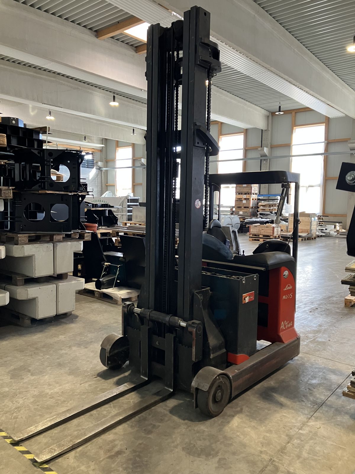 Elektrischer Schubmaststapler RS 20 Linde, Der Stapler ist bis auf die Batterie in Ordnung und jederzeit abholbereit. 2 Tonnen Tragfähigkeit, 7m Hubhöhe. Ladegerät ist im Preis inkludiert