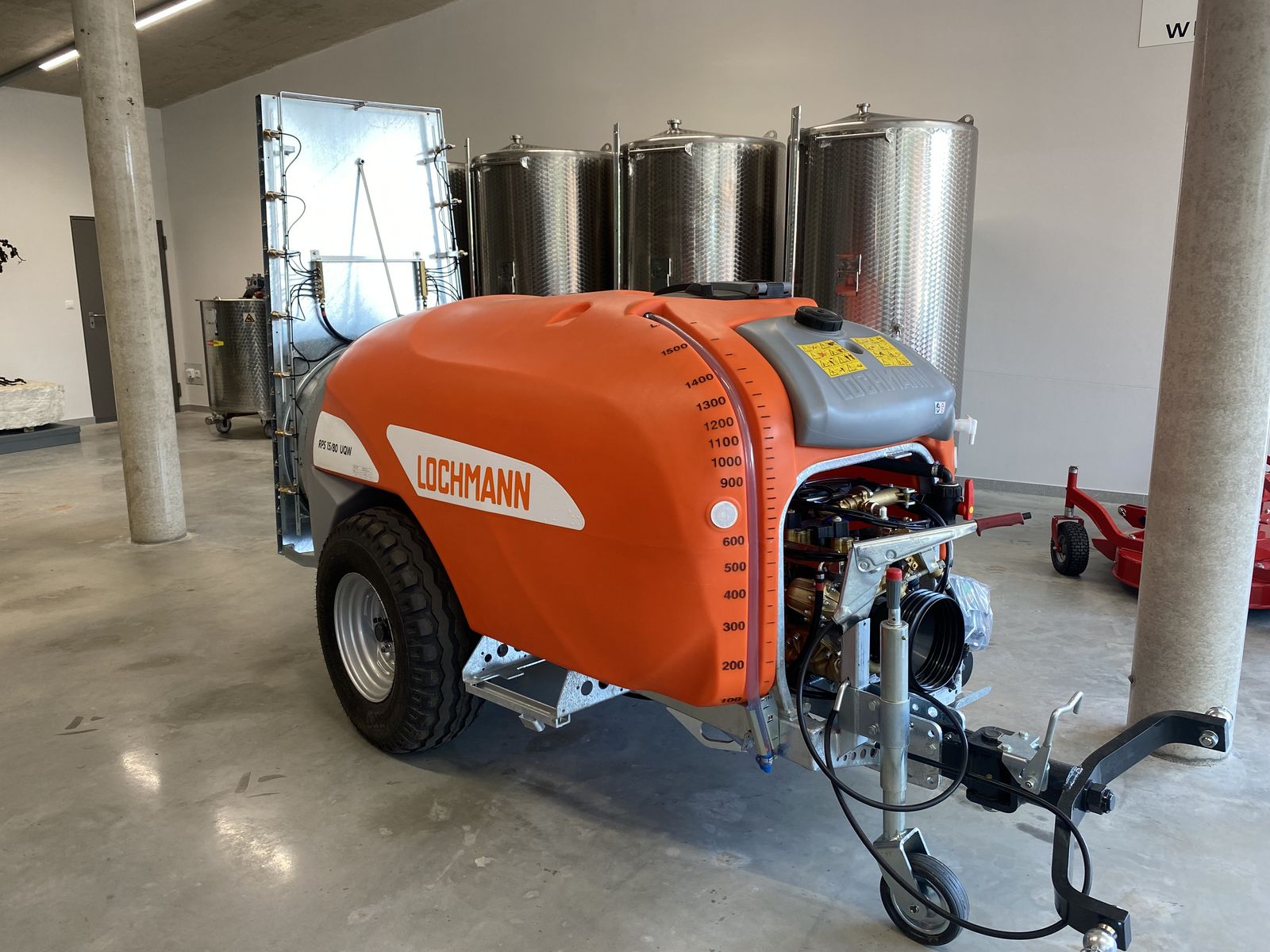 Beschreibung: Das Lochmann RPS 15/80UQW2 ist ein hochmodernes Anhängesprühgerät, das für professionelle Anwendungen im Pflanzenschutz konzipiert wurde. Die fabrikneue Maschine aus dem Jahr 2023 (0 Betriebsstunden) überzeugt durch ihr drallfreies Umkehrdoppelaxialquerstromgebläse mit 800 mm Durchmesser und zweistufigem Umschaltgetriebe. Der feuerverzinkte Rahmen und das Gebläse garantieren Langlebigkeit und Korrosionsschutz. Ideal für anspruchsvolle Flächen und präzise Ausbringung von Pflanzenschutzmitteln. Technische Daten & Ausstattung: Gebläse: Drallfreies Umkehrdoppelaxialquerstromgebläse, 800 mm Durchmesser, 2-Gang-Umschaltgetriebe mit Leerlauf Düsen: 14 Doppelkopfschwenkdüsen mit Albuz ATI Hohlkegeldüsen und Tropfstopp Tank: Polyethylenbehälter mit 1.580 l Fassungsvermögen, 2 Einfüllöffnungen, integrierter 200 l Sauberwassertank (umschaltbar auf Kreislaufreinigung) Pumpe: Dreimembranpumpe aus Messing, 135 l/min bei 50 Bar Regelung: Manuelle und elektrische Druckregelung (jeweils zweifach) Zusatzausstattung: Rotoreinspülvorrichtung, Niederdruckrührwerk (3 Düsen), außenliegender 17 l Händewaschbehälter, Saug- und Druckfilter, Schlauchanschluss an der Pumpe Fahrwerk: Verstellbare Spurbreite, LED-Lichtanlage, Stützrad, Weitwinkelgelenkwelle WWE 2380 (Walterscheid), Knickdeichsel für Unterlenker Bereifung: Breitreifen 15.0/55-17 Besonderheiten: Fabrikneu, 0 Betriebsstunden, Baujahr 2023 Drallfreies Gebläse für optimale Luftführung und präzise Ausbringung Feuerverzinkter Rahmen und Gebläse für maximale Haltbarkeit Umfassende Regelungsmöglichkeiten (manuell und elektrisch) Integrierter Sauberwassertank für effiziente Reinigung Robuste und wartungsfreundliche Konstruktion
