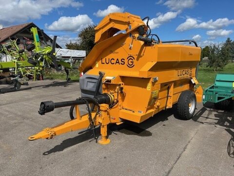 Lucas Verteil- u. Einstreuwagen für Rund-u. Großballen Ersteinsatz 2024 Seitenauswurf rects zum Verteilen mechanische Auflösewalze mit Schmetterlingsklingen Zwei-Gang mechanisch geschweisster Einblock Schneidrotor mit 8 Messern hydraulischer Kamm Hecktür zum Selbstladen 600 kg Gelenkkupplung elektrische intuitive Steuerung PRO Fassungsvermögen 3m3 Zugleistung 65 PS Leergewicht 1970 kg Bereifung: 10.0/75-15.3 Zweiter Steuerungsstand für die Hecktür