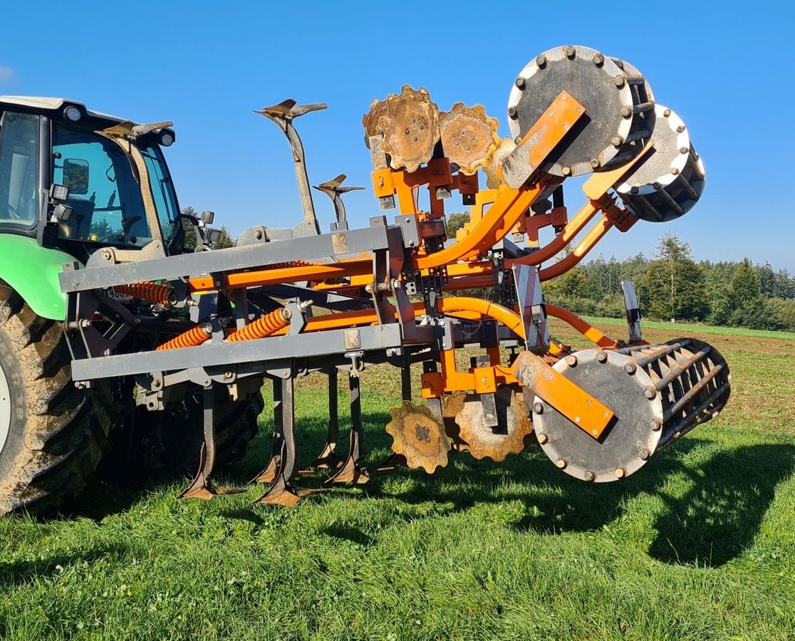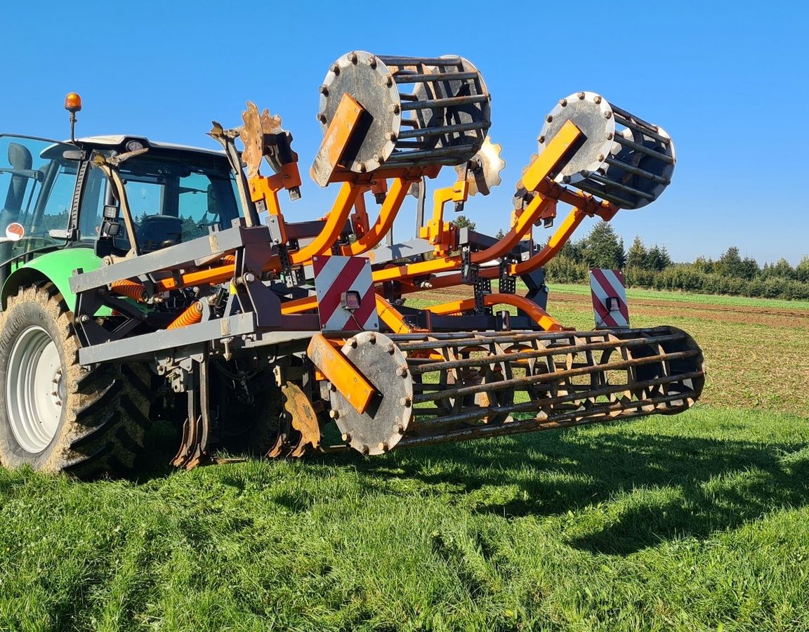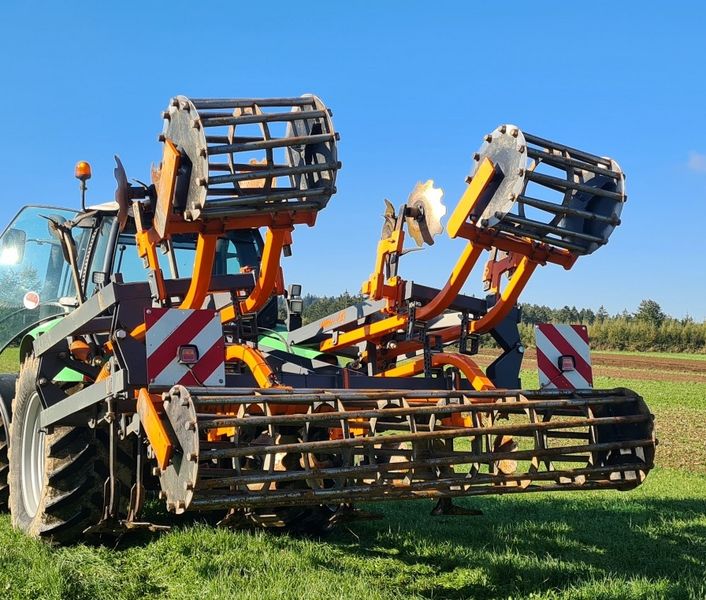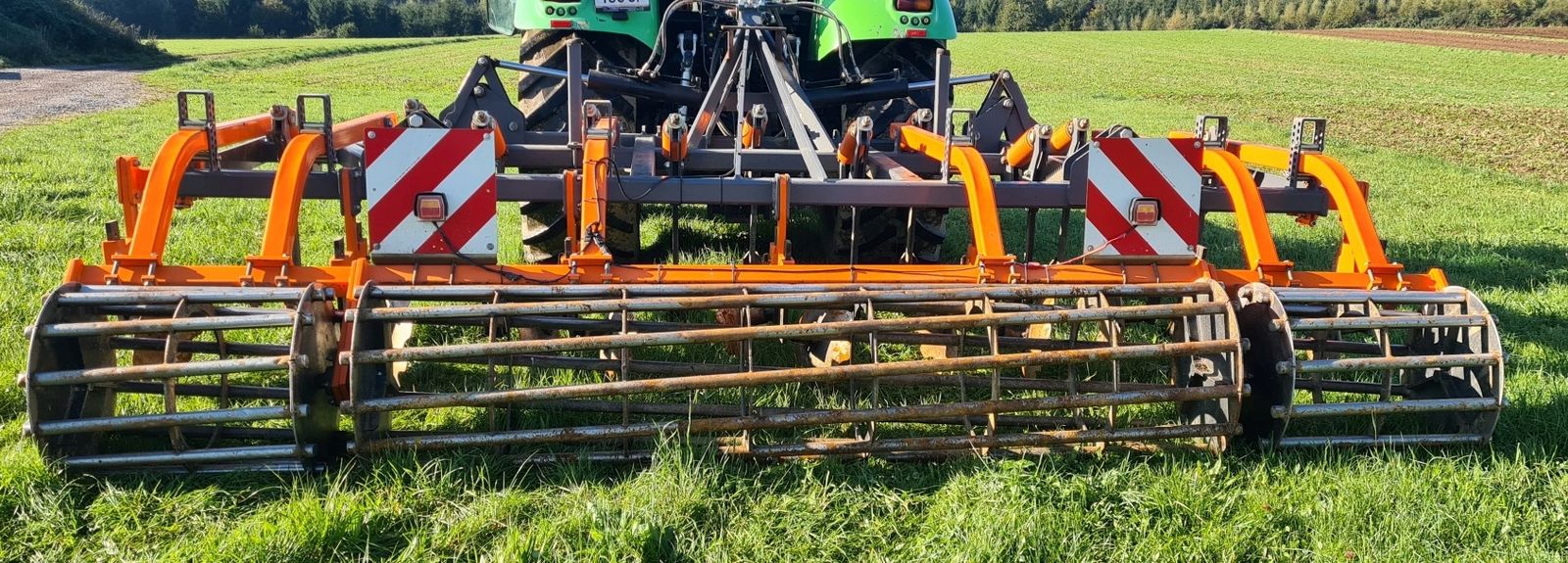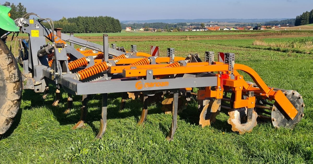 Flügelschargrubber Mandam KUS 4,8m mit Feder-Steinsicherung, Bj. 2020, zweibalkig, Zustreichscheiben hinten, große Stabwalze, LED-Beleuchtung mit Warntafeln, Mittelteil 3m (ideal für Randbearbeitung - es kann auch zusammengeklappt gefahren werden), sofort verfügbar, Transport kann ev. organisiert werden