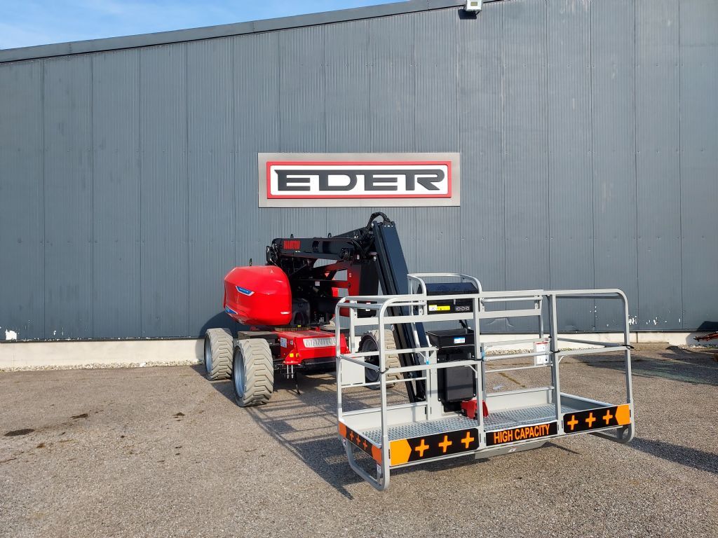 Bauart: Arbeitsbühnen / Gelenkteleskopbühne, Tragkraft: 200kg, Bauhöhe: 2480mm, Bereifung vorne: Non Marking , Bereifung hinten: Non Marking , Beschreibung: Plattformhöhe 14220 mm, Plattformmaße 2,30 x 0,90 mtr, Bereifung nicht kreidend, Allrad, Anschlag- und Verzurrösen, Arbeitskorb 1800 mm, Alarmton und Kontrollleuchte, Load Sensing Pumpe, Pendelvorderachse, verzinkter Arbeitskorb, Totmannpedal, Differentialsperre an Hinterachse