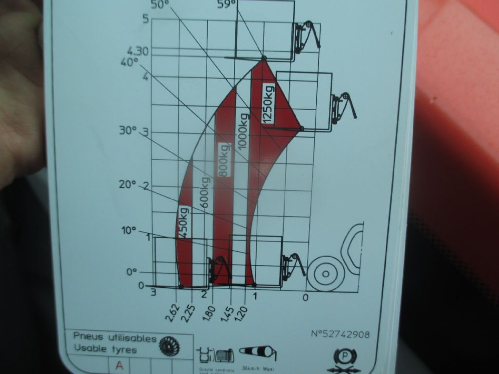 Bauart: Teleskopstapler / Teleskopstapler starr, Tragkraft: 1250kg, Hubhöhe: 4300mm, Bauhöhe: 1920mm, Bereifung vorne: Luft , Bereifung hinten: Luft , Beschreibung: Kabine, Heizung, Beleuchtung StVZO, Arbeitsscheinwerfer, Rückfahrwarnsignal, Reichweite 2620 mm