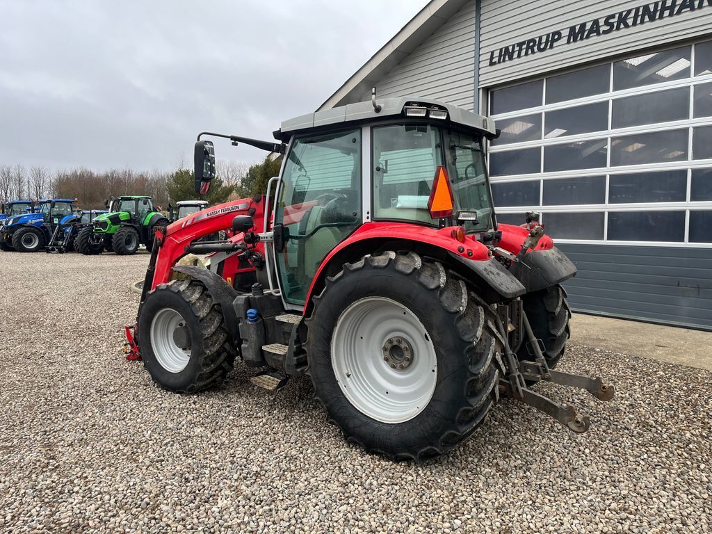 piton og 540/540E/1000 omdr. PTO. På kabinen er der el-justerbare teleskopspejle med vidvinkel og 6 arbejdslys bagud samt 8 arbejdslys fremad. I fronten sidder der en Massey Ferguson frontlæsser med parallelføring