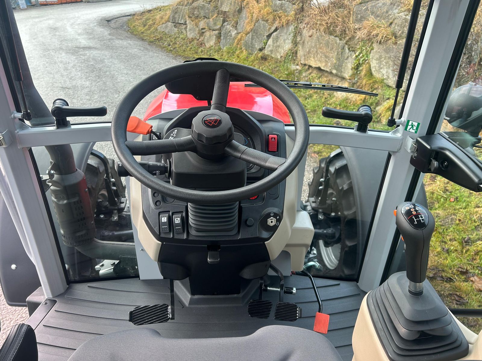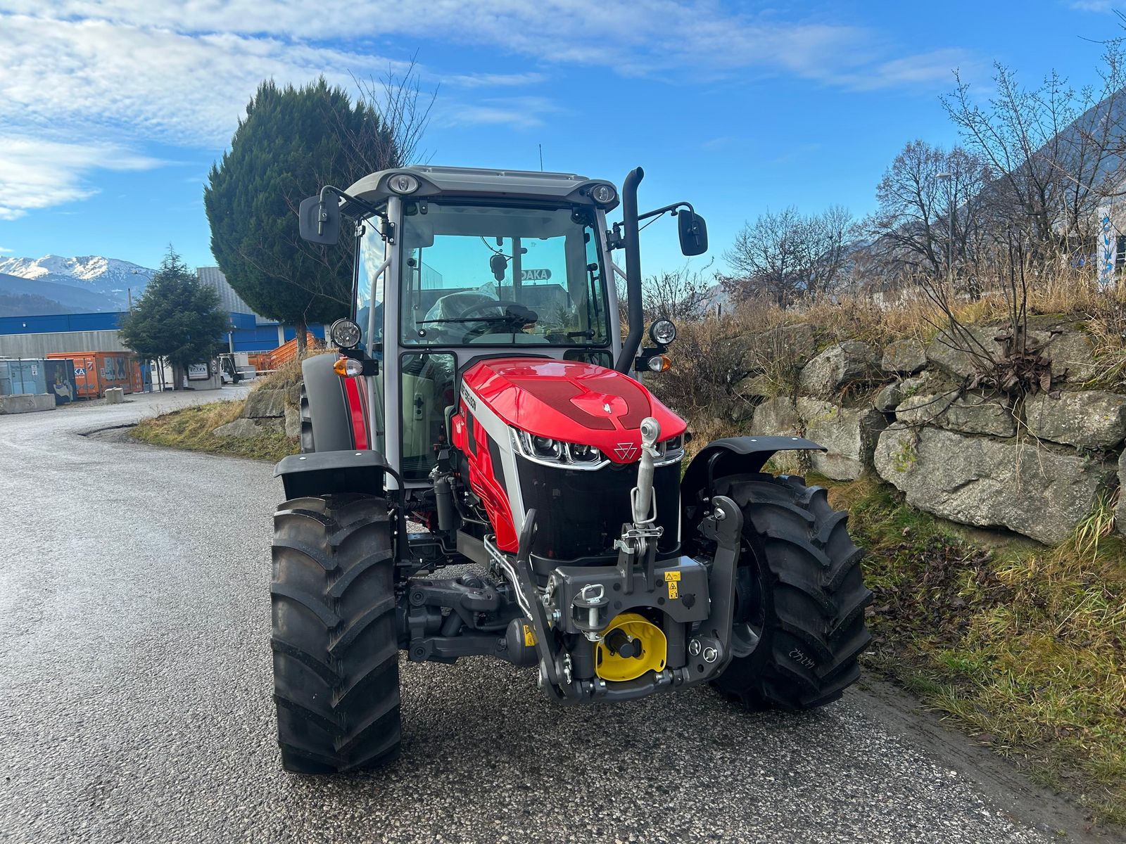 Massey Ferguson 3AL.85 Efficient Motor: - 85 PS, 4 Zyl. Abgasstufe Stage-V - Auspuff oben Getriebe: - 30x15 Gang-Getriebe; SpeedShift, PowerShuttle, 40km/h ECO Hydraulik: - 95l/min, 4 SV: 2 x elektrisch dw, SST, MR (Joystick) + 2 x elektrisch dw, SST, MR, Timer (Fingertip) - Leckölsammler für alle Ventile Heben und Kupplung: - Vom Boden verstellbare Hubspindeln - EHR (elektronische Hubwerksregelung) 3000kg mit Bedientasten an den Heckkotflügeln, - Mehrscheiben-Allradkupplung Fahrerplatz und Kabine: - Lenksäule in Höhe und Neigung verstellbar - Deluxe Luftgefederter Komfortsitz - aufstellbare Frontscheibe - Radiovorbereitung mit Antenne und Lautsprechern - Kabine mit Lüftung, Heizung und ebenem Kabinenboden - Klimaanlage - Farbiges Armaturenbrett - Batterietrennschalter - Weiße Scheinwerfer für Rechtsverkehr - Rundumleuchte - USB Port (Steckdose) in der Kabine - Werkzeugkasten Zusatzausstattung: + Vorderachsfederung und Mehrscheiben-Allradkupplung + Hydraulische Anhängerbremse 2-Leitungen (erkennt automatisch Einleitungskopplung) + Unterlenker mit Fanghaken Kat II mit Kugelsatz + Schnellhöhenverstellbare automatische Anhängekupplung + Fronthubwerk 1,65 T Kat. II + Zapfwelle 540/1000 hydraulische Kupplung + Frontzapfwelle 1000 U/min + 200mm Kotflügel-Verbreiterungen + Vorderradkotflügel 410 mm, drehbar + Beifahrersitz mit Sicherheitsgurt + Heckscheiben Wisch-Waschanlage + Zweiter Satz Fahrscheinwerfer mittig an den Begrenzungsleuchten