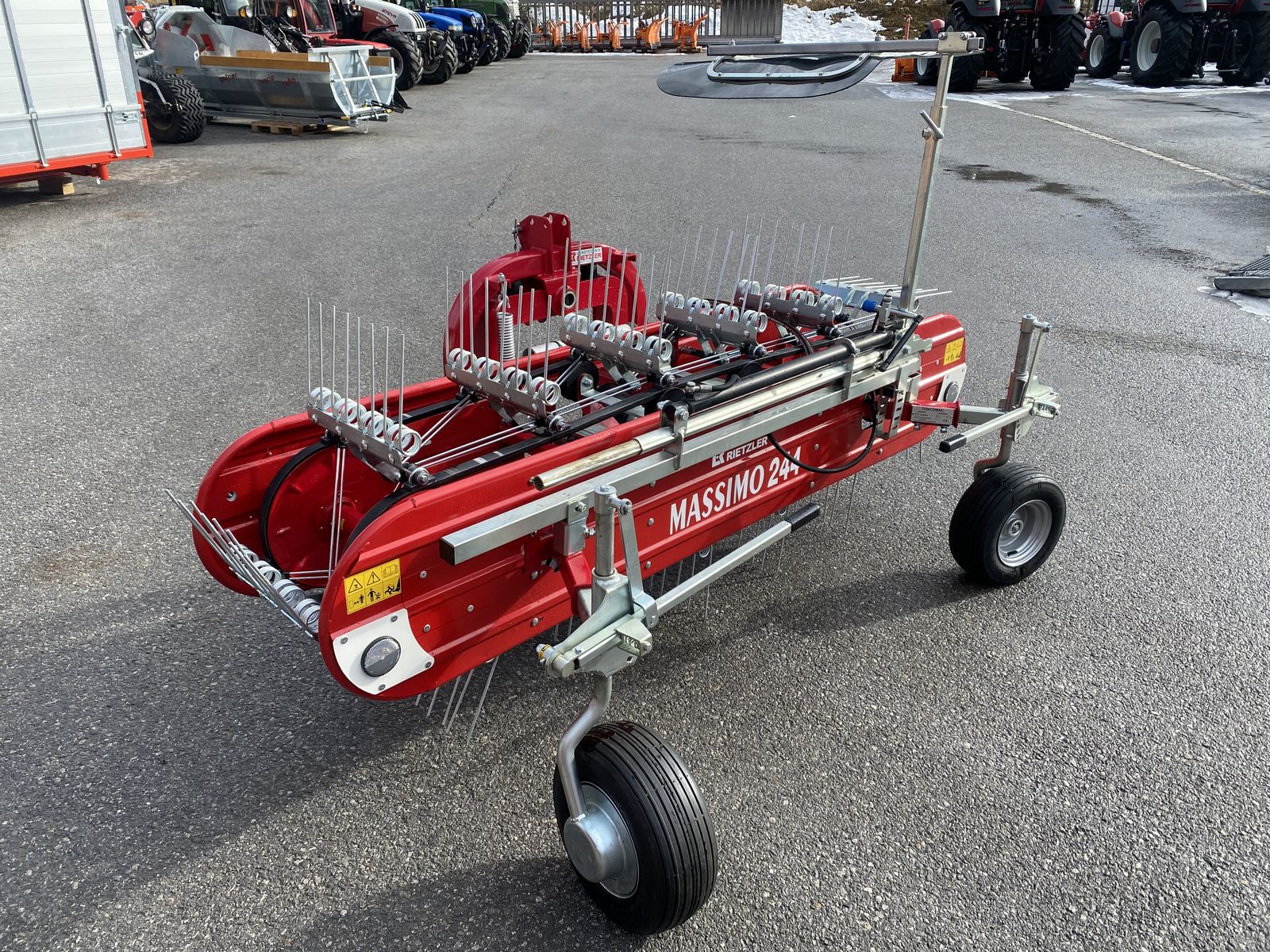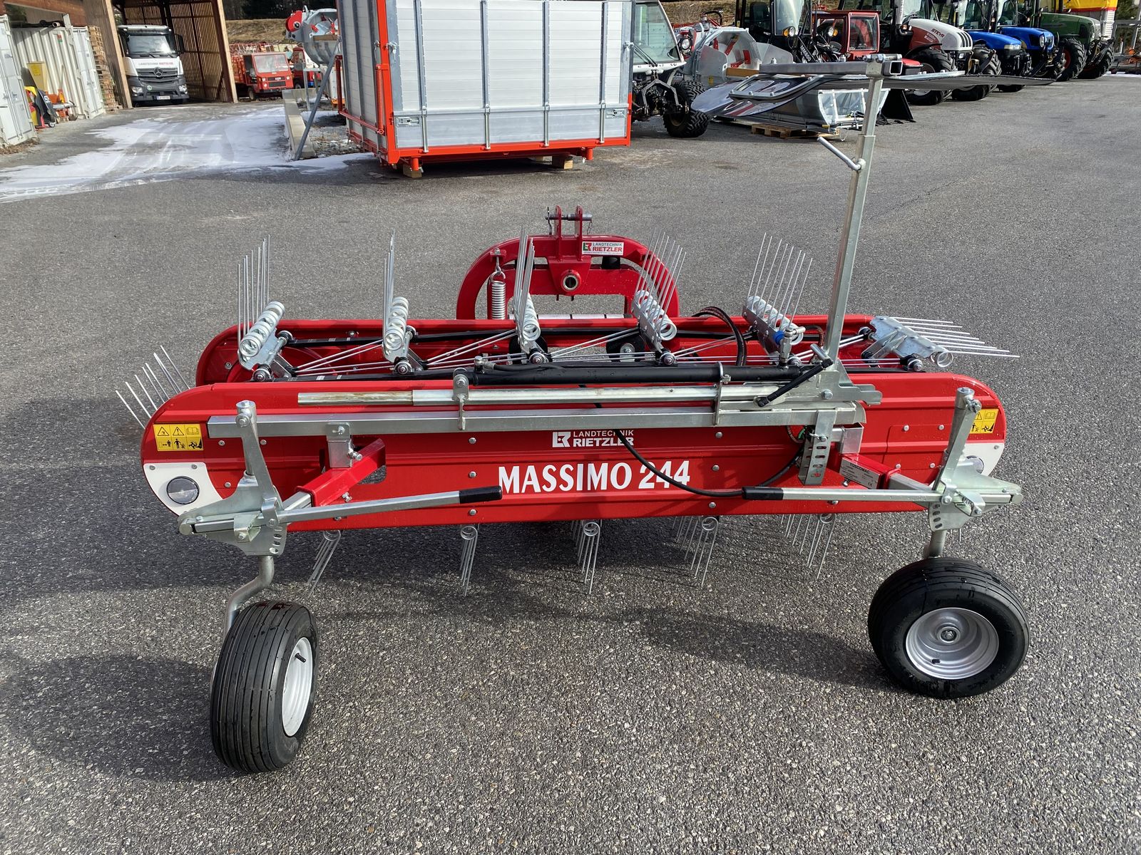 Massimo Bandrechen in verschiedenen Arbeitsbreiten erhältlich. Durch die patentierte Aufhängung mit Längspendelung und das dritte Tastrad ergibt sich eine optimal perfekte Bodenanpassung KAT 1 und 2 erhältlich. Robuster und solider Rahmen Zinkenträger mit Doppellenkstange Robustes Doppellenkstange Robustes Doppeltastrad Reflektoren für den Straßentransport an beiden Seiten montiert Hydraulisches Schwadtuch- serienmäßig Vorderräder 15x 6.00-6 (4 Doppelzinken) und 16 x 6.50 – 8 (5 Doppelzinken) Einfache Anpassung von Bandrechen an alle Fahrzeuge/Geräteträger Serie 4 -mit 4 Doppelzinken Bandrechen Massimo 224 Euro 6.500,- inkl.MwSt. Arbeitsbreite / Außenbreite / Gewicht 2100/2300mm / 330 Bandrechen Massimo 244 Euro 6.800,- 2300/2630mm Bandrechen Massimo 264 Euro 7.100,- 2450/2800mm Serie 5 -mit 5 Doppelzinken und breiterem Band Bandrechen Massimo 245 Euro 7.500,- 2300/2630mm Bandrechen Massimo 265 Euro 7.900,- 2450/2800mm Bandrechen Massimo 285 Euro 8.500,- 2650/3040mm Bandrechen Massimo 305 Euro 9.200,- 2850/3100mm + ZUBEHÖR + Fracht bei Einzellieferung : Anbaubock Looser - leichte Ausführung KAT1 + Kat2 Euro 670,- Anbaubock Lingg schwere Ausführung KAT1 + Kat2 Euro 990,- Hydr. Fangschild Typ Weber Auf/Ab-Ein/Aus Euro 580,- Gelenkwelle EURO 230,-