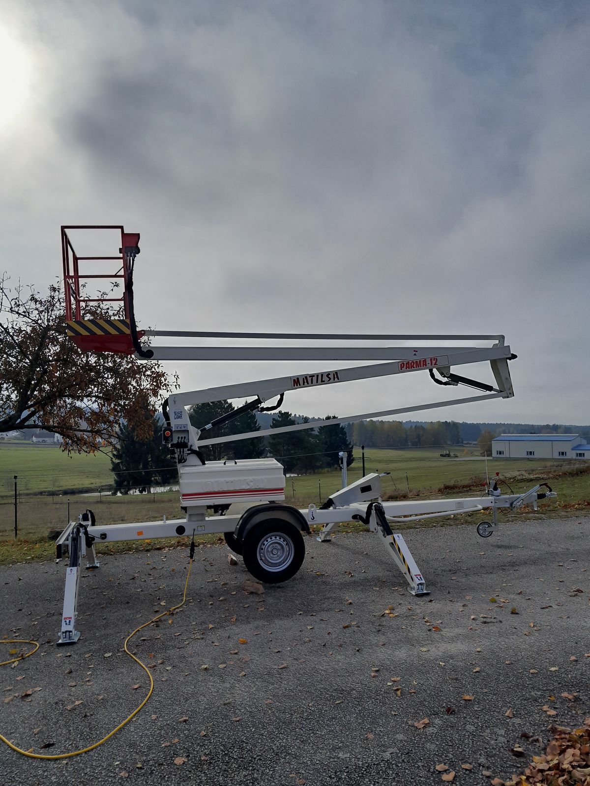 *Neu* Besuchen Sie uns auf alpenlift-marktplatz* *Inserieren möglich* Beschreibung: Marke: Matilsa Parma 12 Max. 12 m Arbeitshöhe Max. 4.75m seitliche Reichweite Antrieb: Elektro 230V Transportabmessungen: ca. 6.00m x 1.60m Eigengewicht: 1240 kg Hydraulische Abstützung 2 Mann Korb Inkl. Lichtbalken Netto Preis 22500€ Aktion Lagernd! Finanzierung möglich für Firmen Fa. Alpenlift, Ihr Partner für neue Arbeitsbühnen von 7 bis 17 Meter!