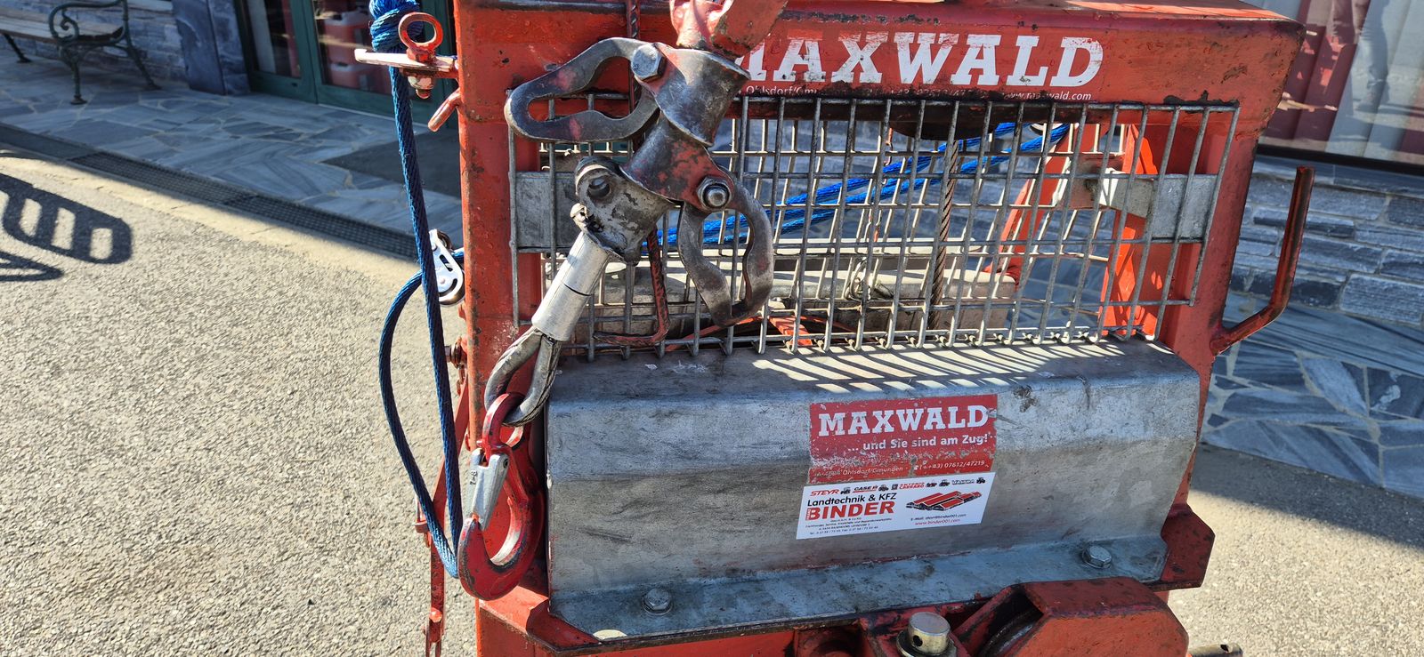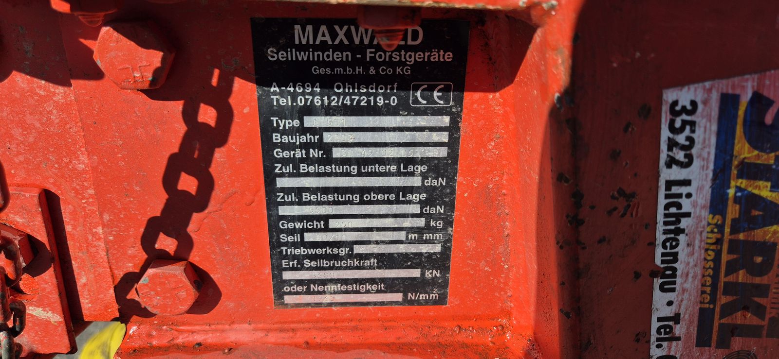 sehr schöne wenig gebrauchte Maxwald Forstseilwinde A501 mit 5to Zugleistung, 80m Stahlseil hochverdichtet mit 10mm Durchmesser Endhacken und 2 Seilgleiter, untere Umlenkrolle, Rückeschilbreite 1350mm, 6 St. Ketteneinhängeschlitze am Rückeschild ( 3x li. und 3x re.) , Abstellstütze, Schutzgitter, Gelenkwelle,