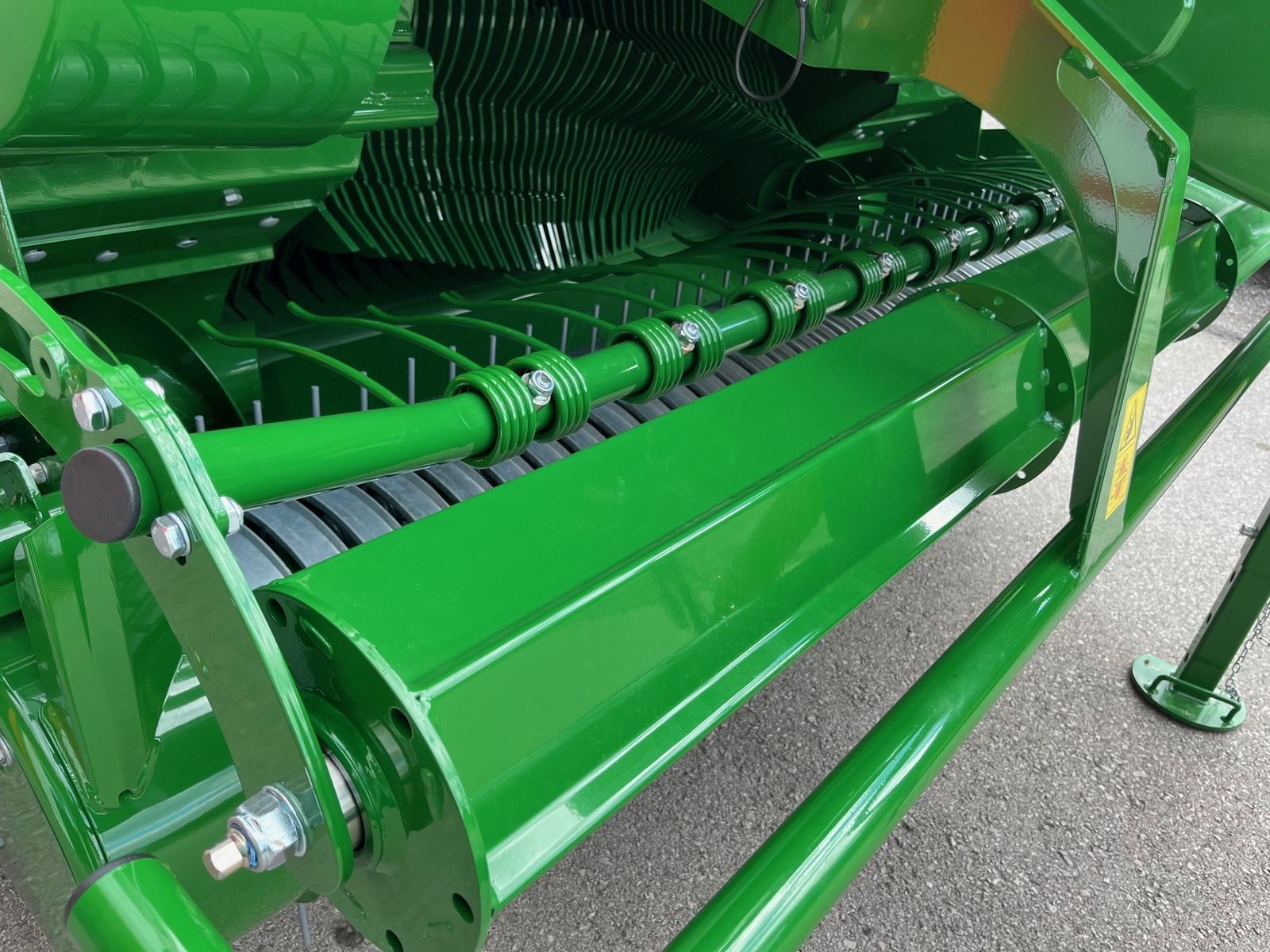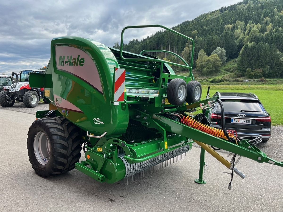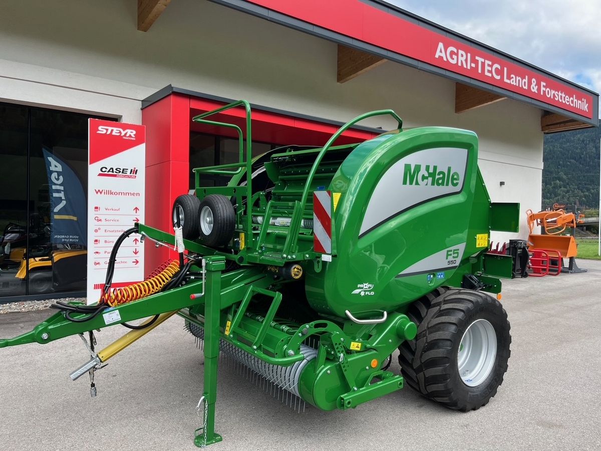 McHale F5-550 Rundballenpresse mit fester Ballenkammer, IControl 5 Bedienmonitor für halbautomatische und manuelle Bedienung, 18 verstärkten Presswalzen, hydraulisches Schwenkbodensystem, Vario - Netzbindungssystem mit einstellbarer Netzvorstreckung, Presskammer Durchmesser 125 cm, automatisch progressive Lagerschmierung, Ballenkammerverfüllung durch Hochleistungs-Rotor 540 mm, Pickupbreite: 2,10 m, 2-Leiter Druckluftbremse, 25 Messer Schneidwerk mit Gruppenschaltung, 6-reihige ungesteuerte Pickup flexibel, verstärkte Gelenkwelle Power Drive für Getriebe 540 U/min, Ballenablagerolle, Spring Tine Rollenniederhalter, Kamera für Ballenablage, Kameramonitor, Bereifung: 560/45 R 22,5